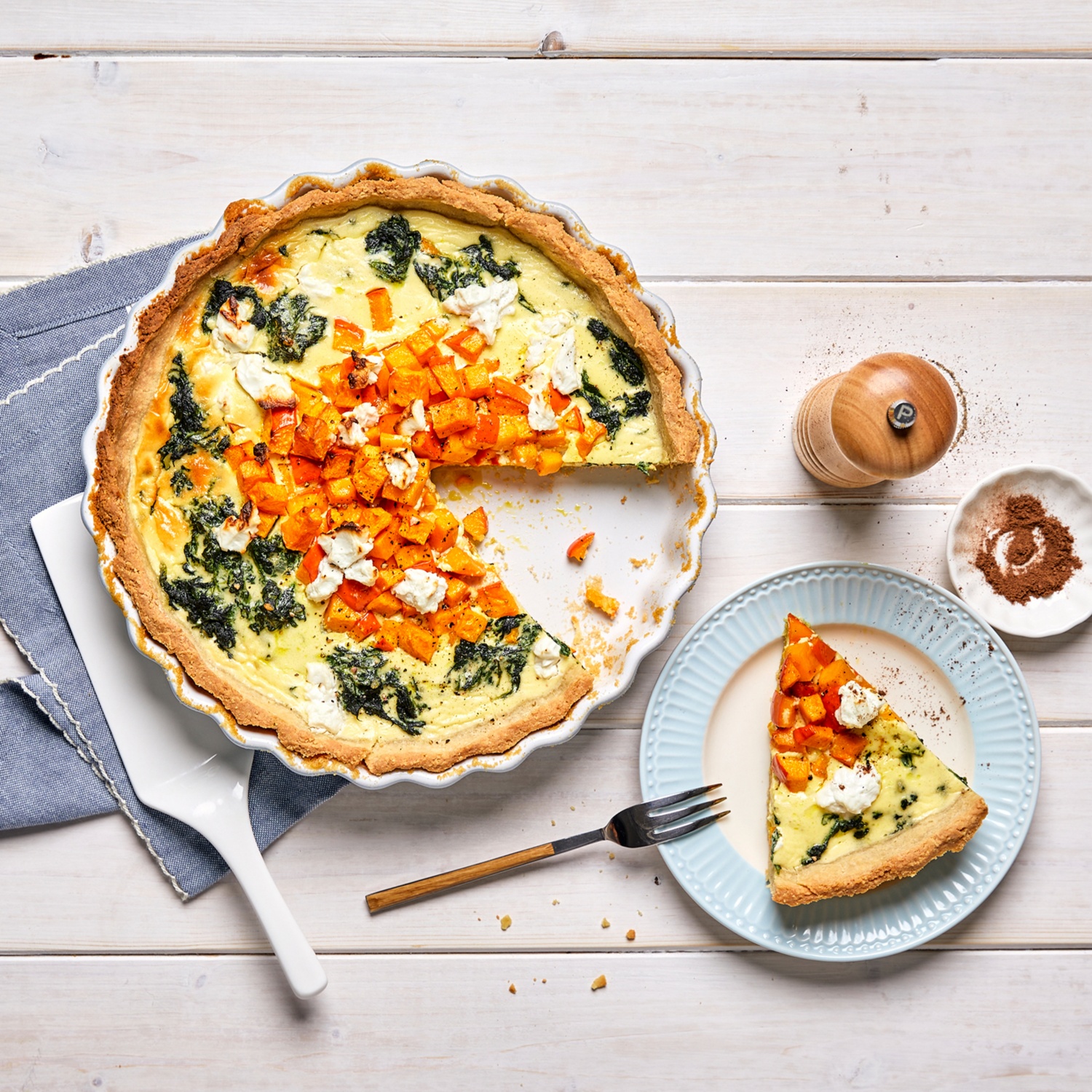 Kürbis-Quiche mit Spinat