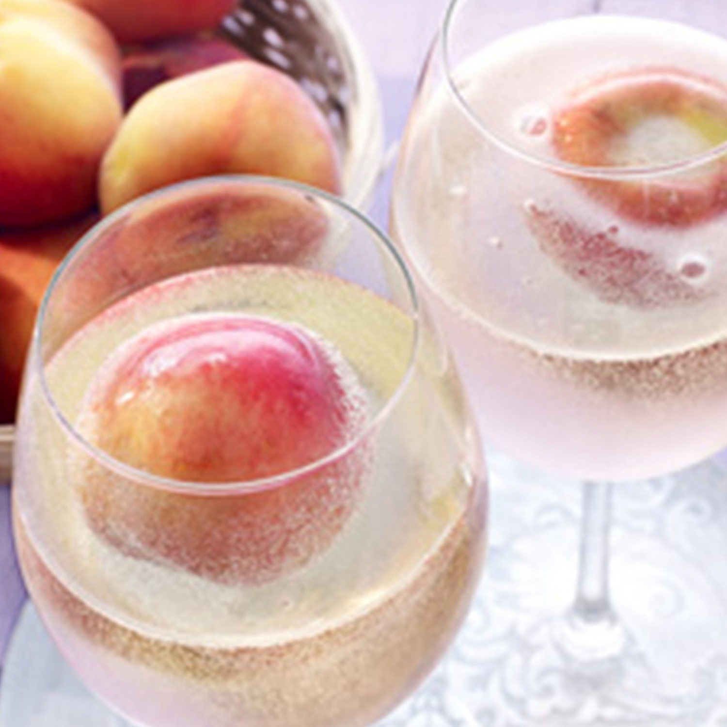 Ein visuelles Spektakel, das auch erfrischt! Bringen Sie etwas Spaß in Ihr Sektglas, indem Sie einfach einen Pfirsich hinzufügen. Die perfekte Sommerfrische! Zum Rezept