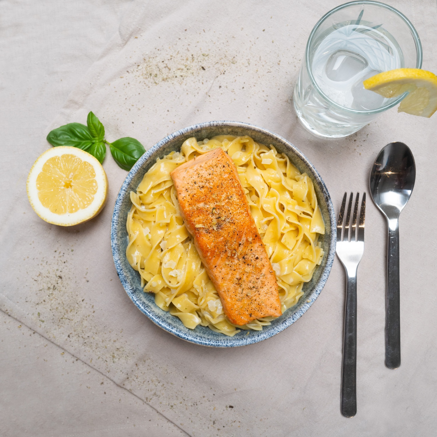 Bandnudeln in einer frischen Zitronen-Sahne-Sauce und dazu ein auf den Punkt gegartes Lachsfilet: So einfach geht Pasta-Glück. Zum Rezept