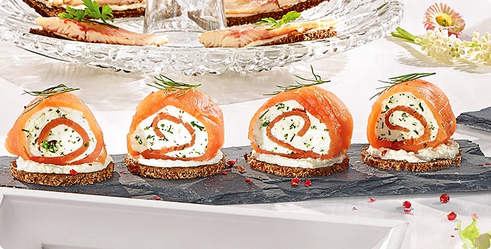 Lachs ist vielseitig und kann auf unterschiedliche Arten zu raffinierten Gerichten verarbeitet werden. Die Lachsforellen Röllchen mit Pumpernickel ist ein ganz besonderes und einfach zubereitet. Zum Rezept