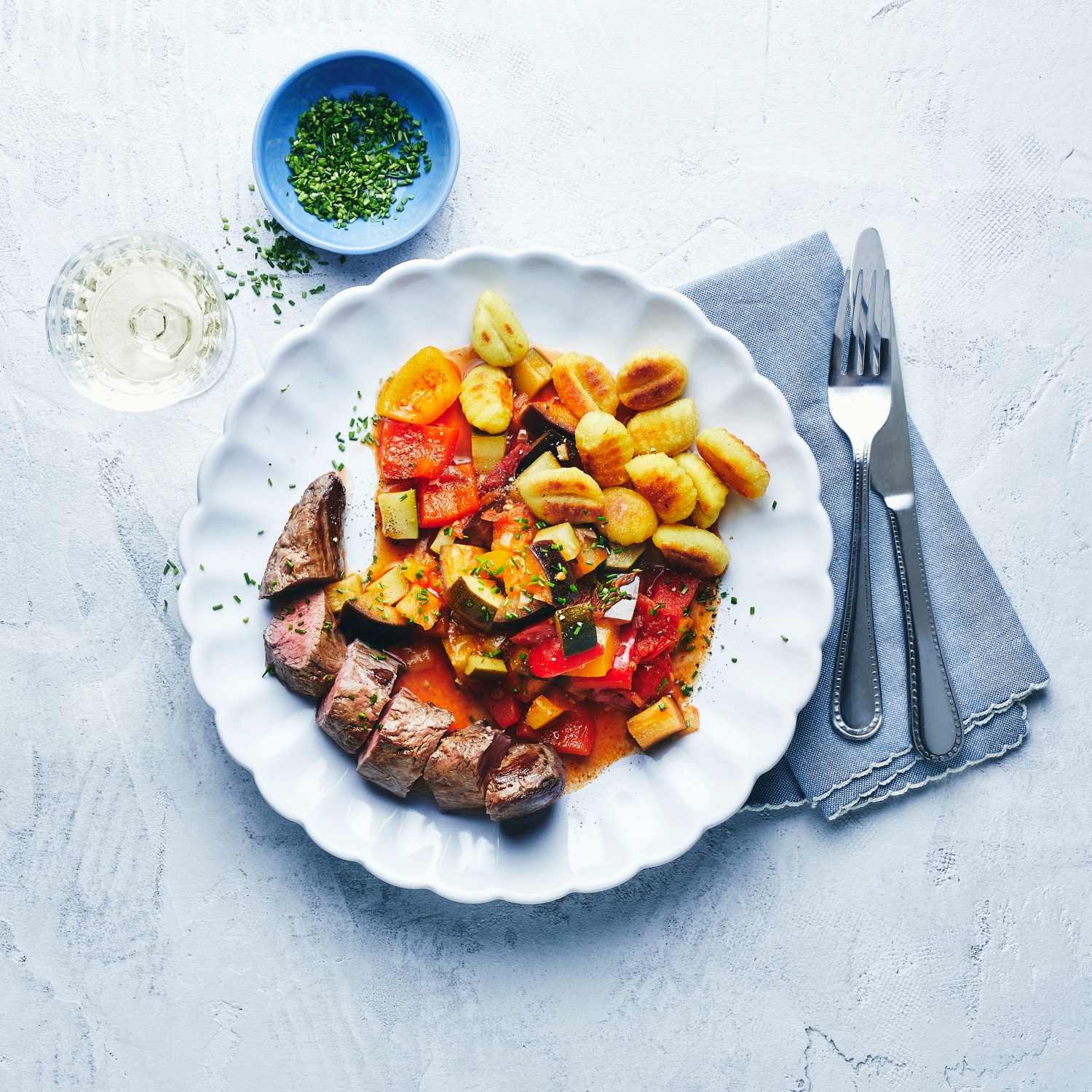 Lammfilet mit Ratatouille und gebratenen Gnocchi