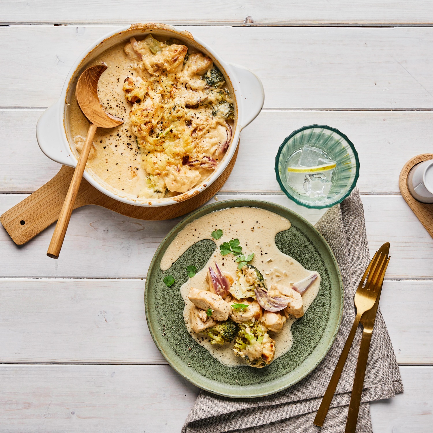 Bewusster Genuss, ohne Kohlenhydrate: Probiere unser Low-Carb-Hähnchen mit Brokkoli und Käse überbacken. Zum Rezept