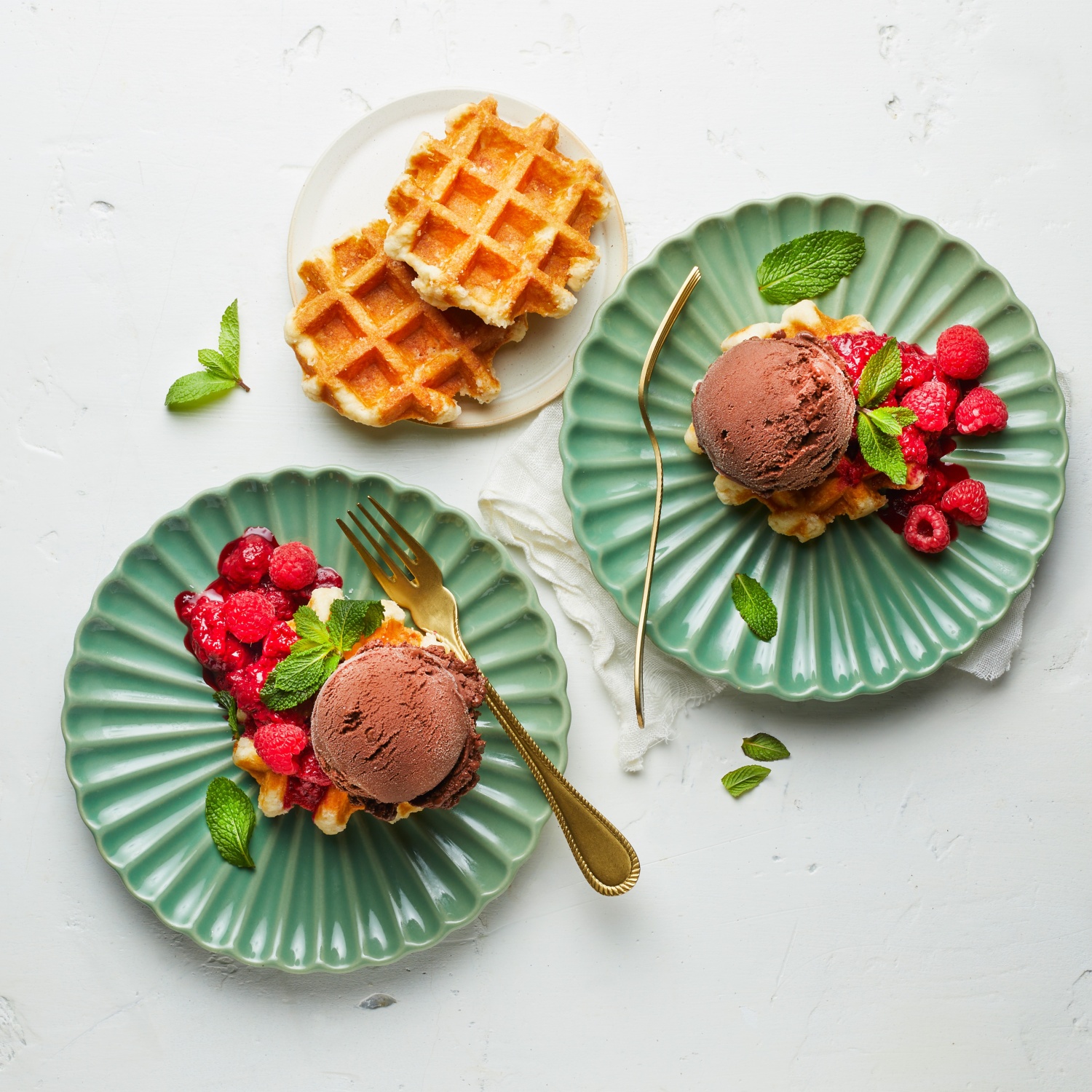 Eiskalter Schokoladengenuss auf einer duftenden Waffel mit warmen Himbeeren: Wer sagt da noch, dass es das perfekte Dessert nicht gibt! Zum Rezept