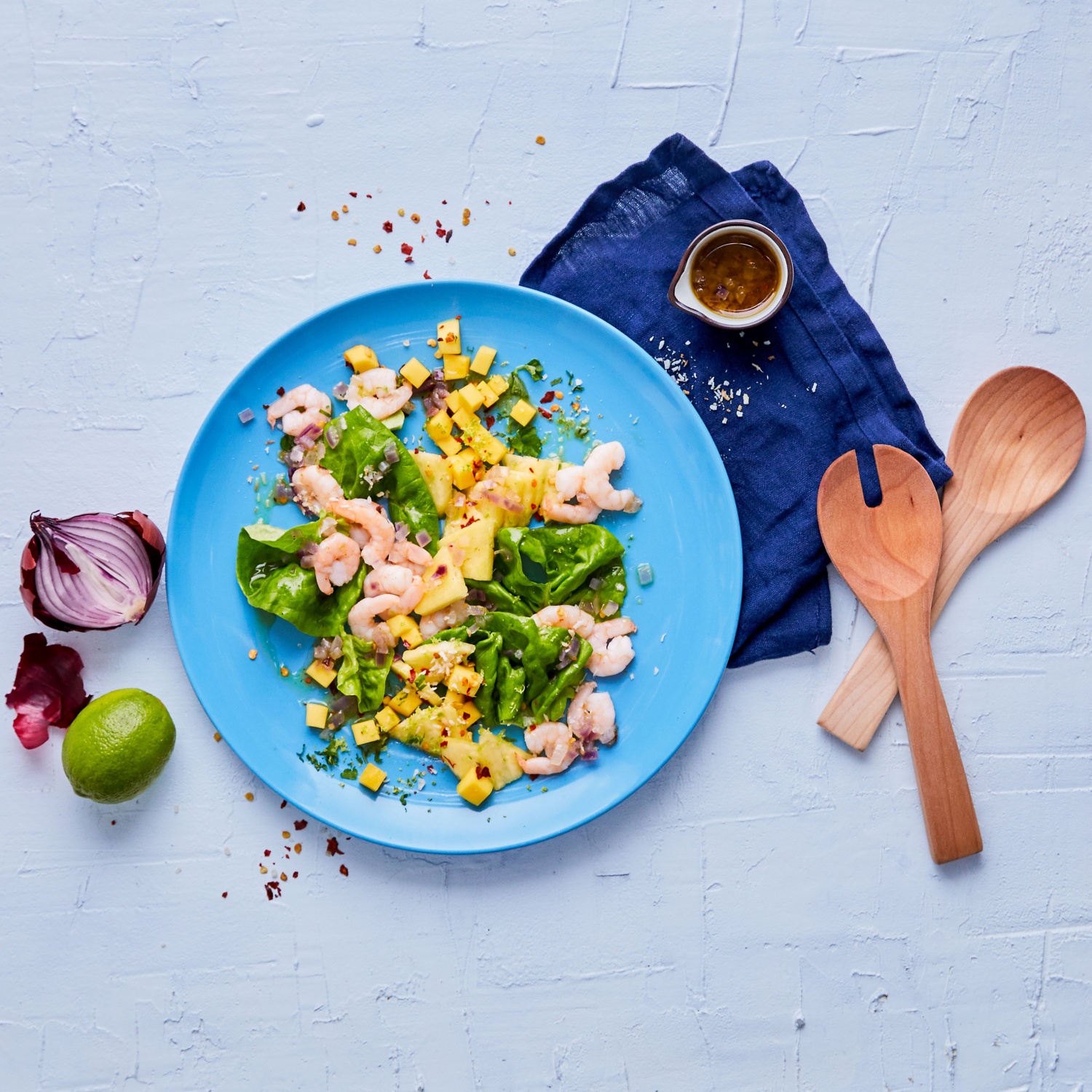 Wenn Sie Ihre Linie halten möchten, wird dieser exotische und fruchtige Garnelensalat mit Mango und Ananas Sie ohne Reue befriedigen. Zum Rezept