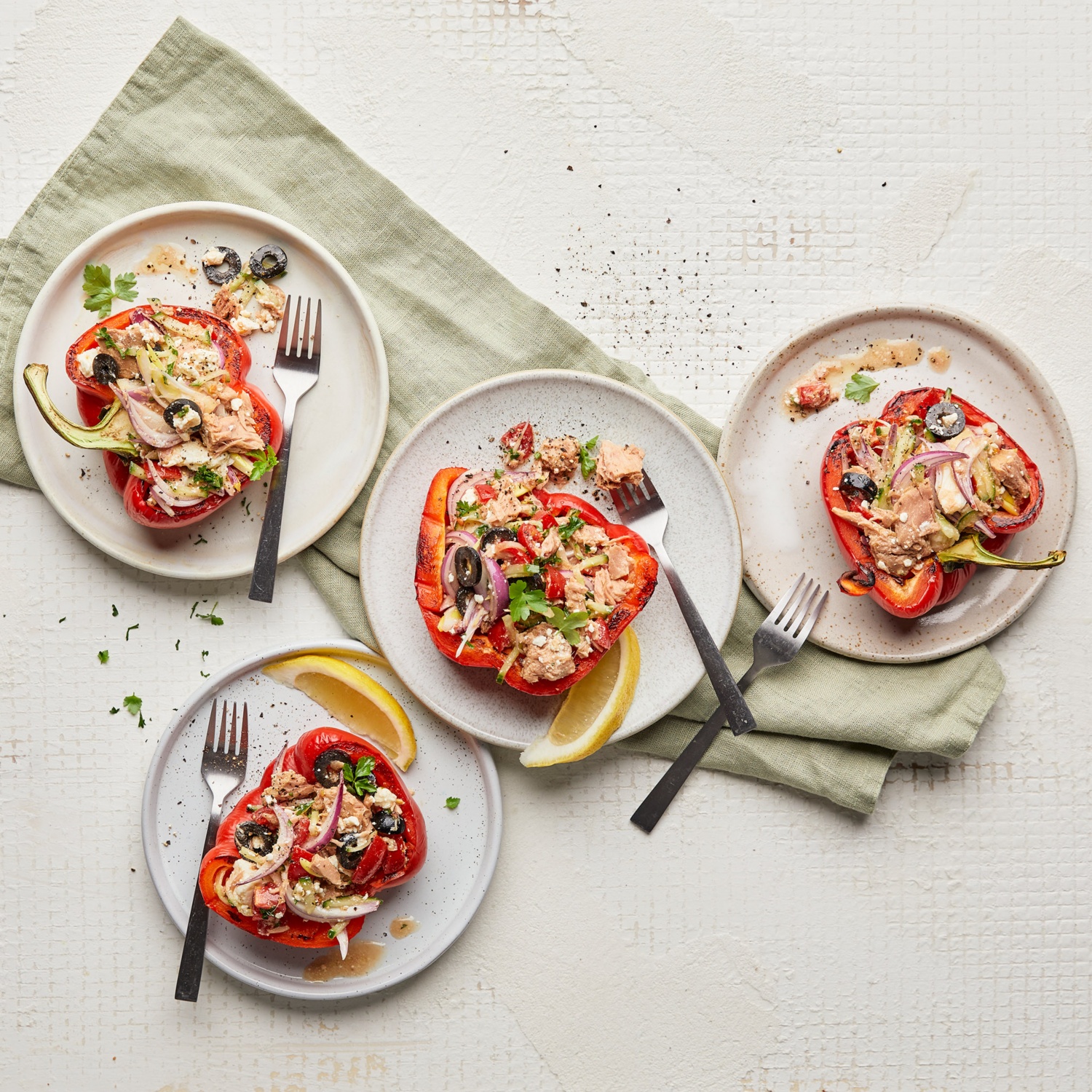 Mediterraner Thunfischsalat in gerösteter Paprika