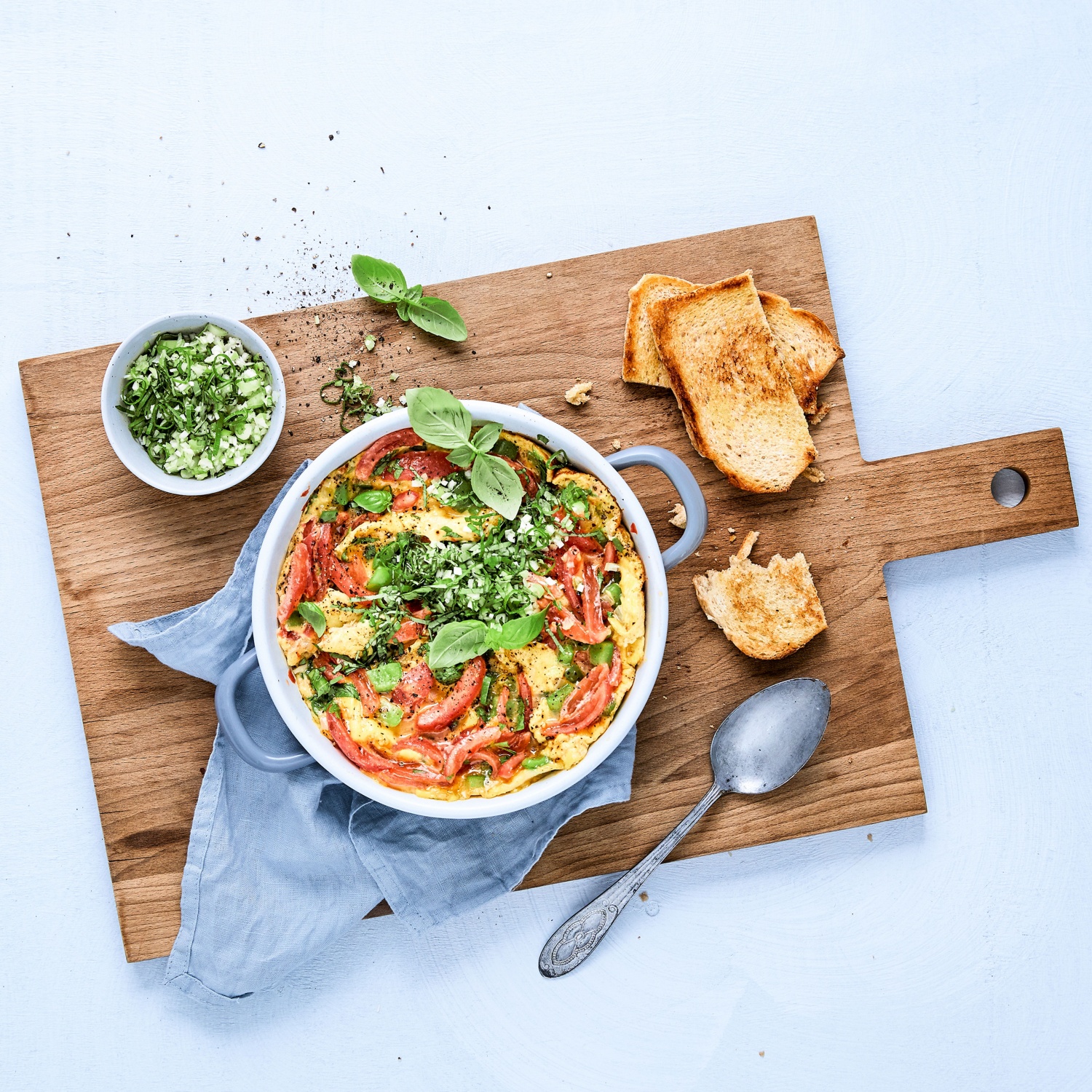 Frühstück auf türkisch: Menemen, die leckere Eierspeise isst man für gewöhnlich am Morgen. Das türkische Rührei ist blitzschnell zubereitet und bringt dich nährstoffreich in den Tag. Zum Rezept