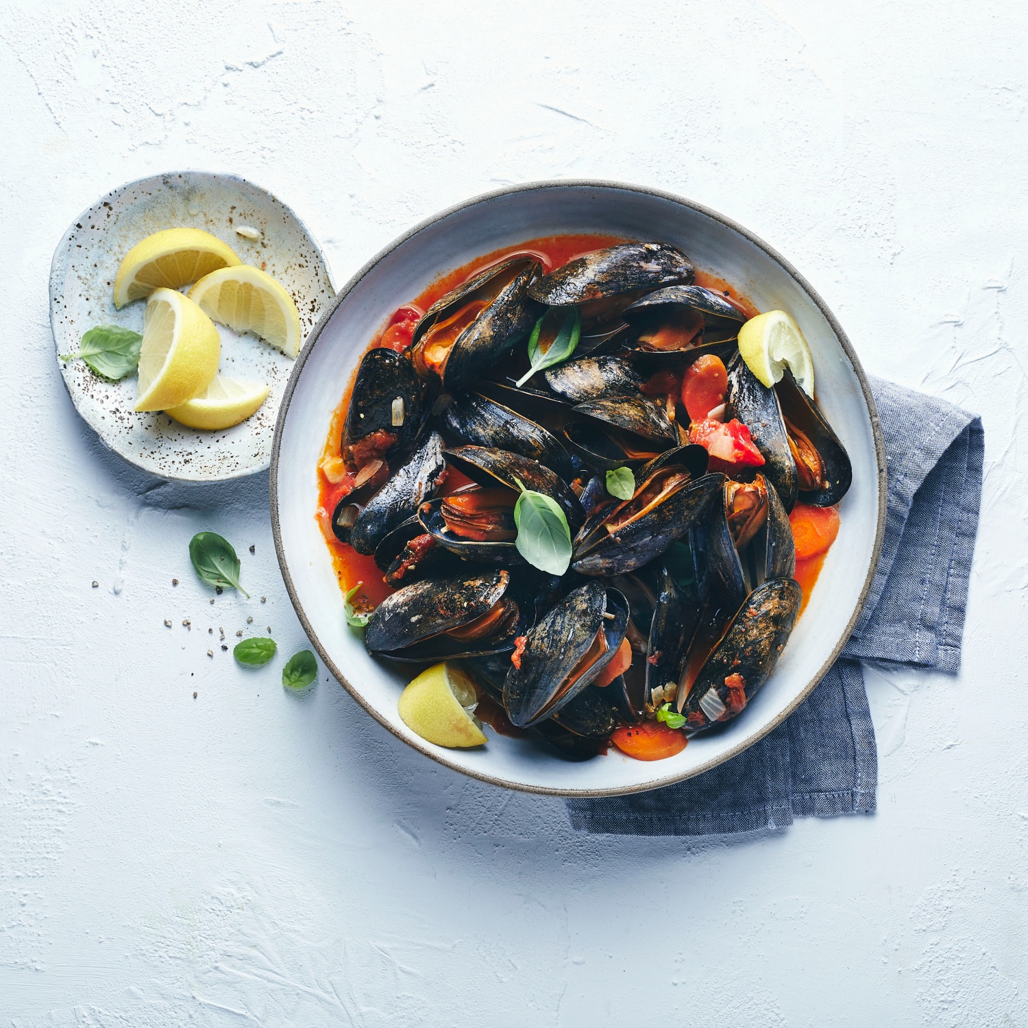 Darf‘ s heute ein bisschen „Meer“ sein? Vom großen Salzwasser landen diese leckeren Meeresfrüchte direkt im Kochtopf und werden in Tomatensud-Weißweinsud gegart.