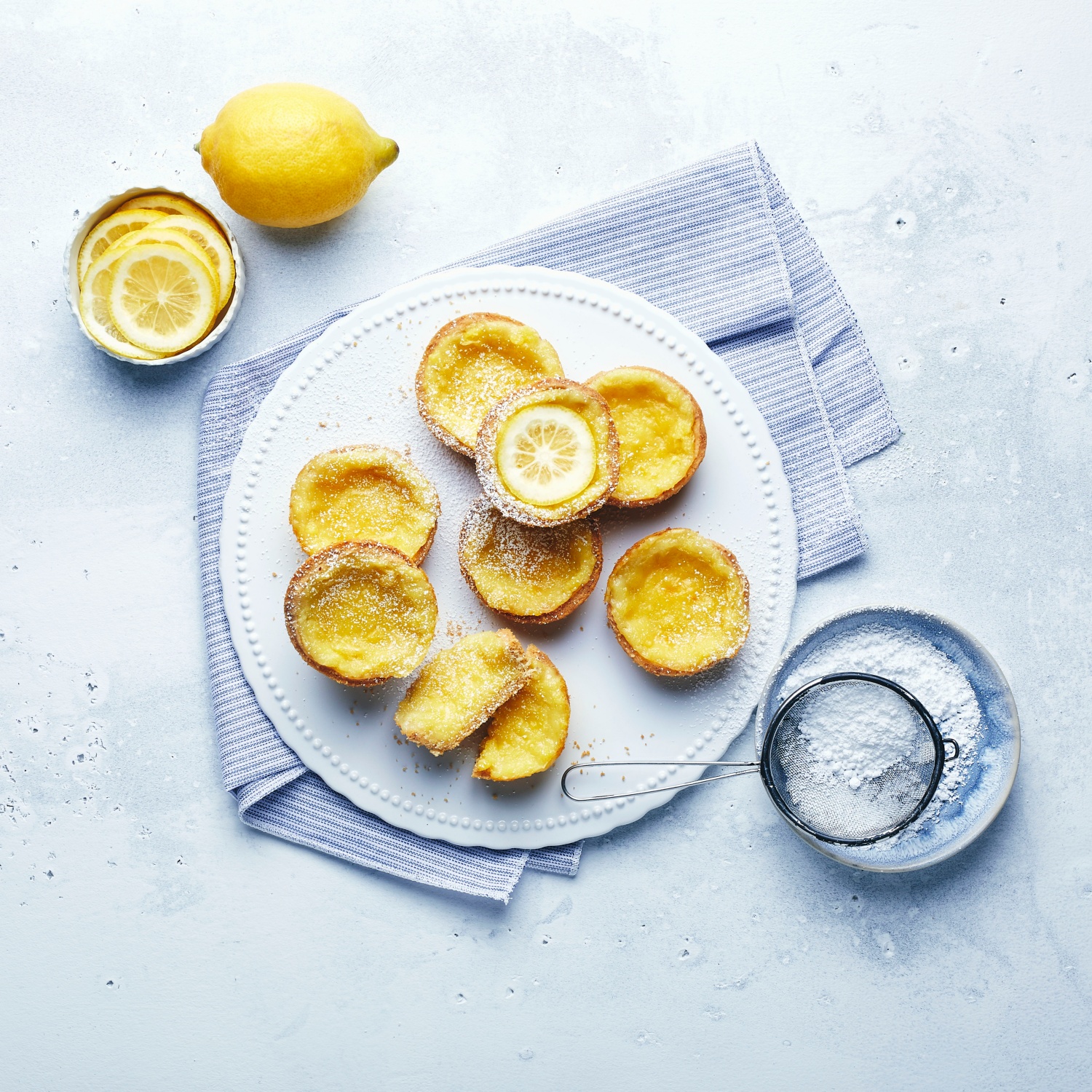 12. Die Zitronencreme in den Backförmchen verteilen und im Ofen weitere 20 Minuten backen, vollständig auskühlen lassen und die Küchlein vorsichtig aus den Förmchen nehmen.