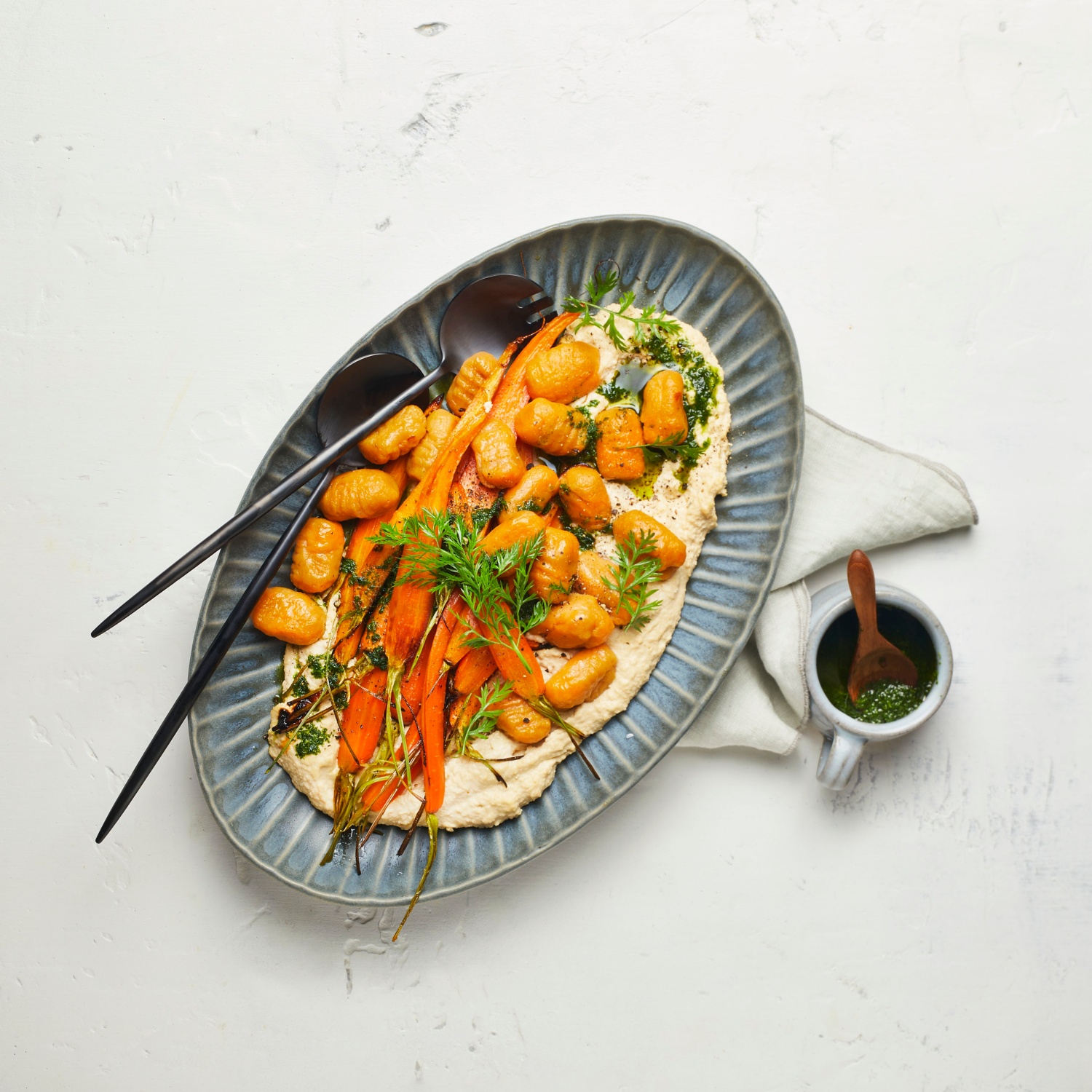 Selbstgemacht schmeckt doch am besten und ist auch gar nicht so kompliziert. Aus Möhren und Süßkartoffeln werden ruck zuck leckere Möhren-Gnocchi auf Hummus. Zum Rezept