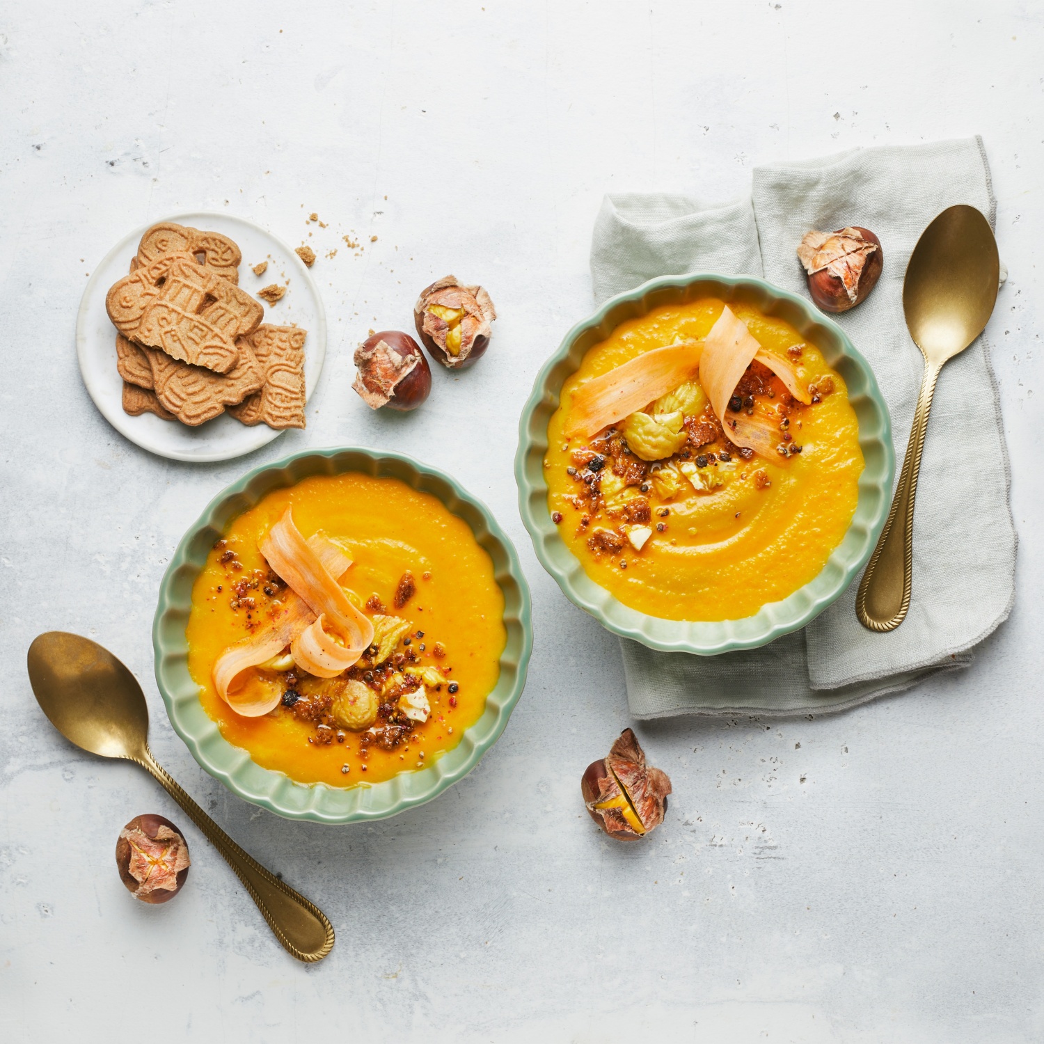 Möhren-Maronen-Suppe mit Spekulatiuskrümeln