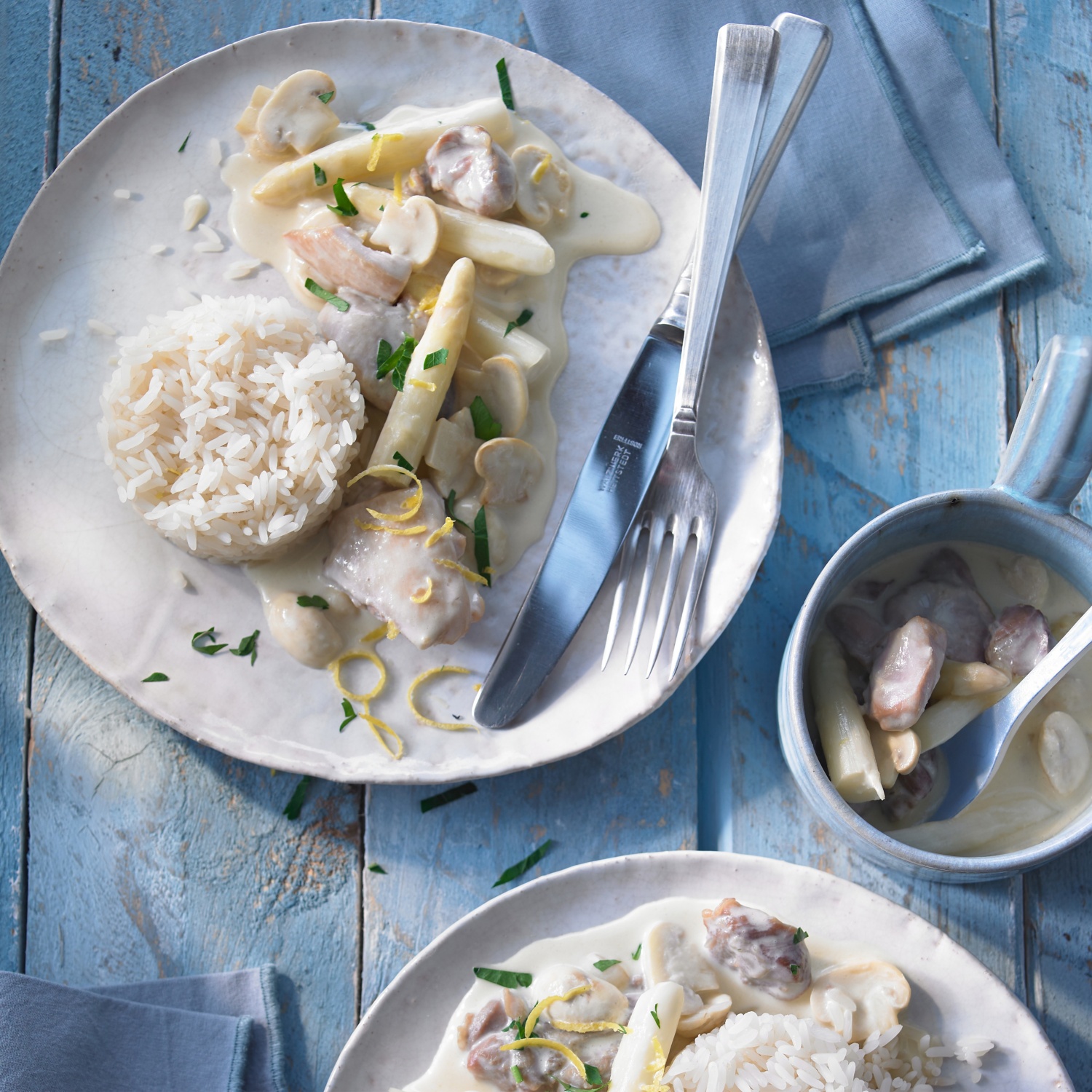 Nelson Müllers Frikassee vom Landhuhn und Spargel mit Reis