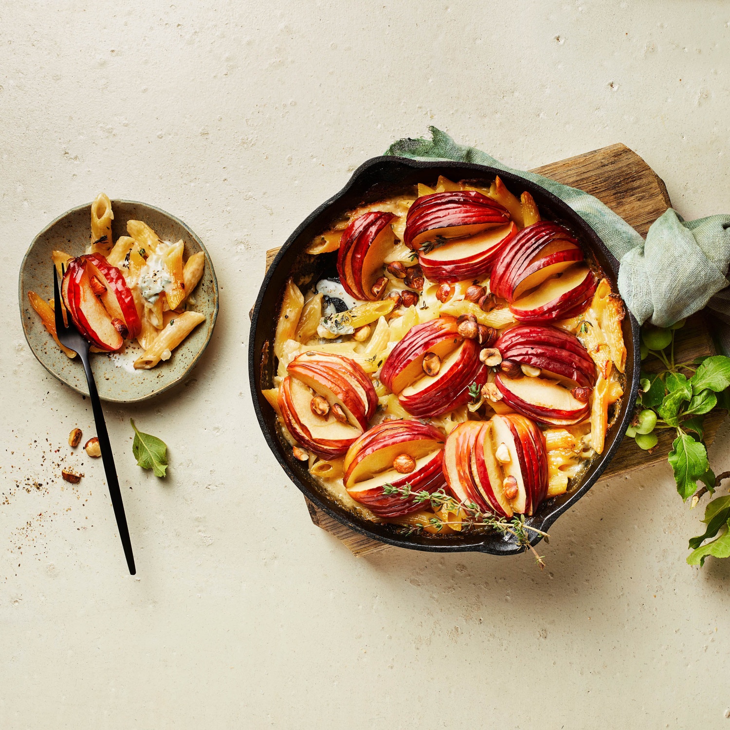 Nudelauflauf mit Äpfeln und Gorgonzola
