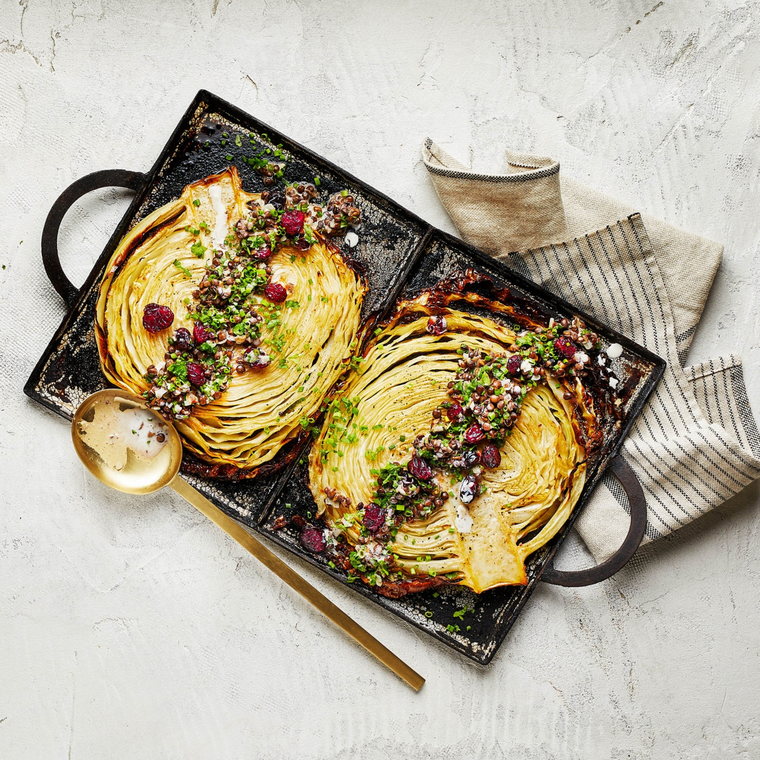So raffiniert hast du Weißkohl bestimmt noch nicht gegessen. Hier werden die Weißkohlscheiben goldbraun angeschmoren und mit Kräuter-Cranberry-Topping serviert. Zum Rezept