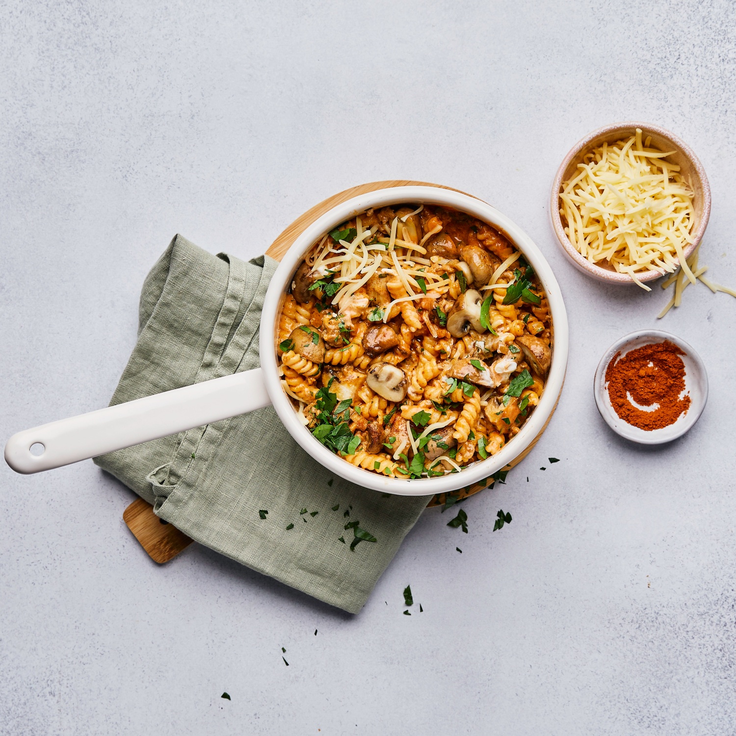 - Einen Deckel aufsetzen und die One-Pot-Pasta 15–20 Minuten köcheln lassen, bis die Nudeln gar sind und sie die Flüssigkeit aufgenommen haben.
