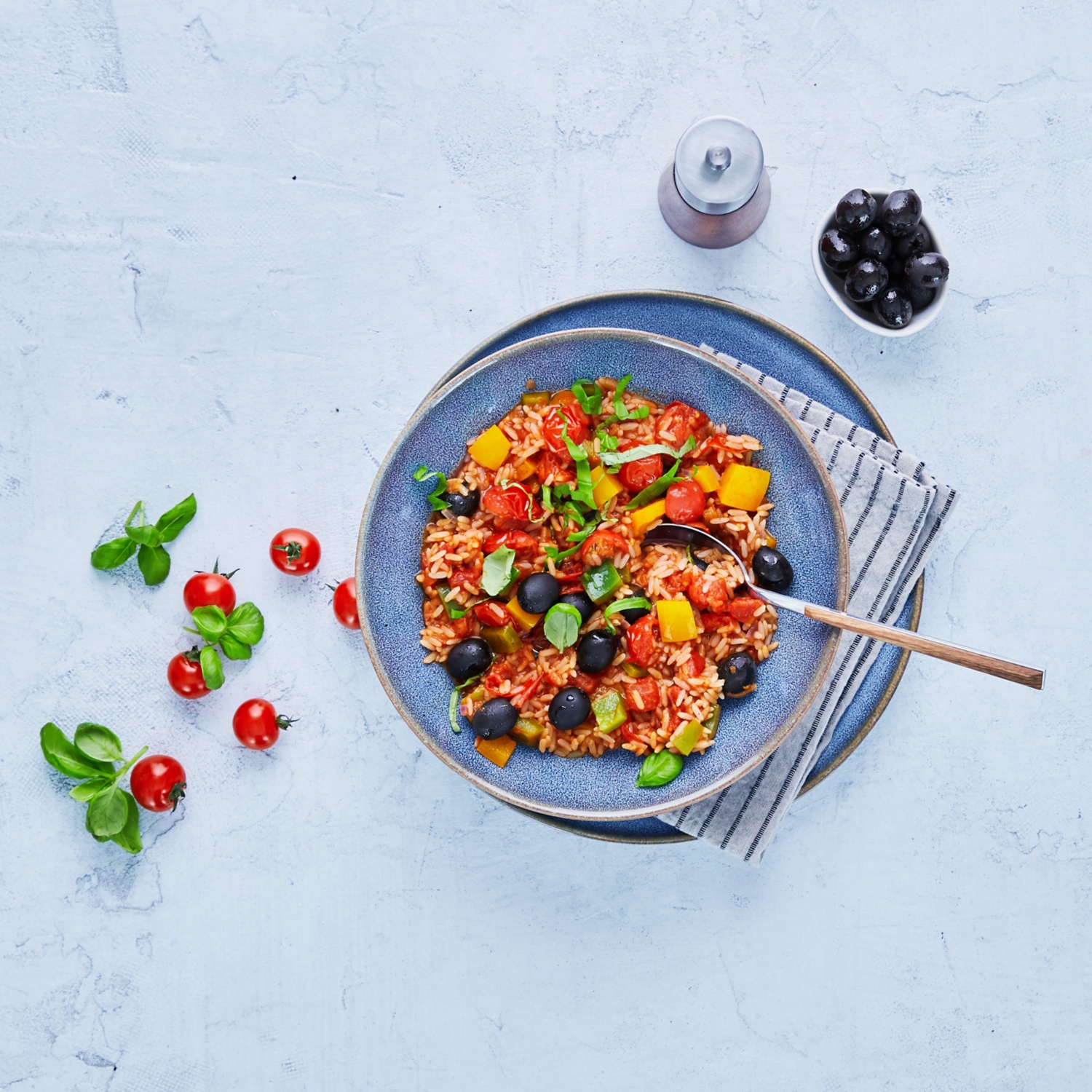 One-Pot-Reis mit Paprika, Tomaten und Oliven
