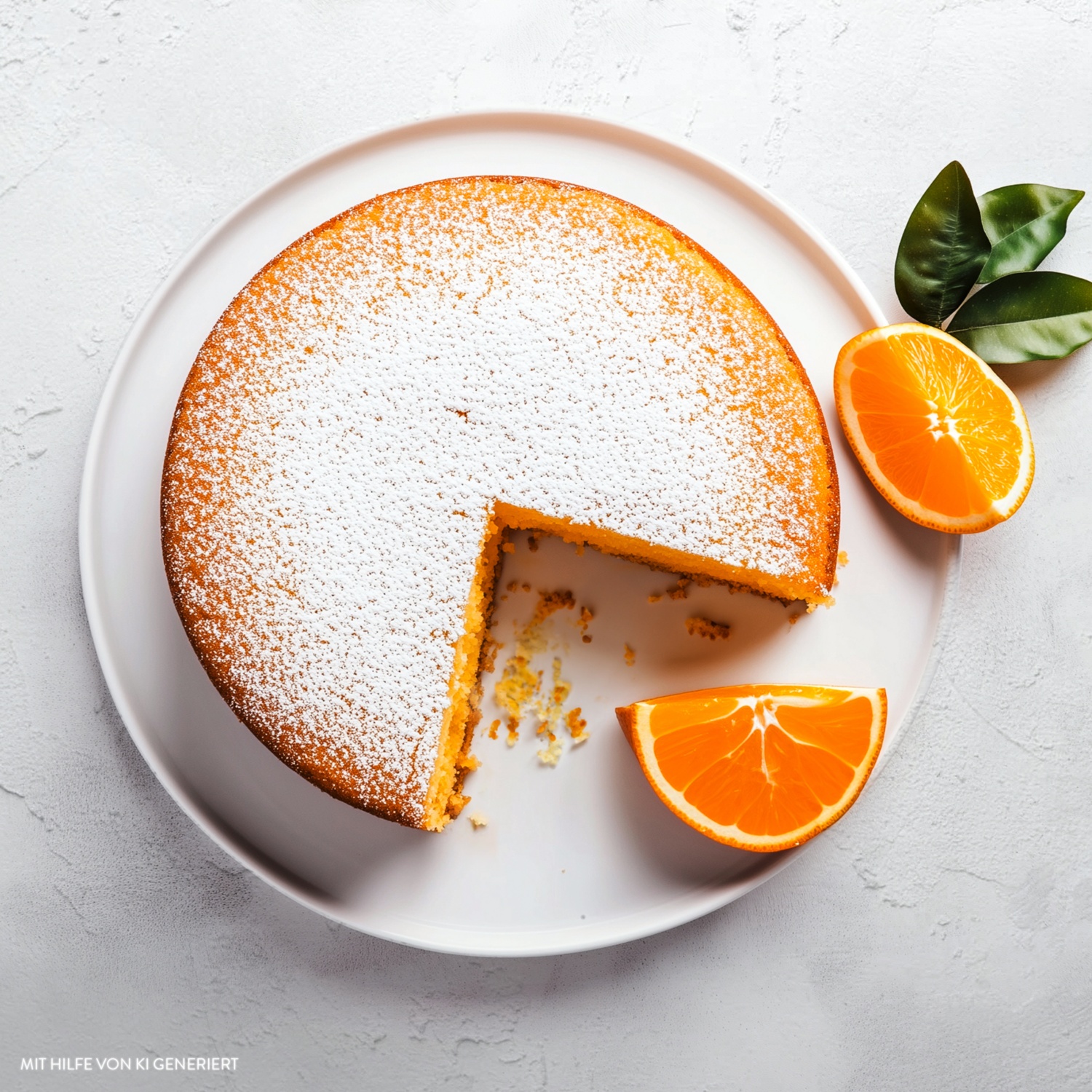 - Vor dem Servieren mit Puderzucker bestäuben und optional mit Orangenscheiben garnieren.