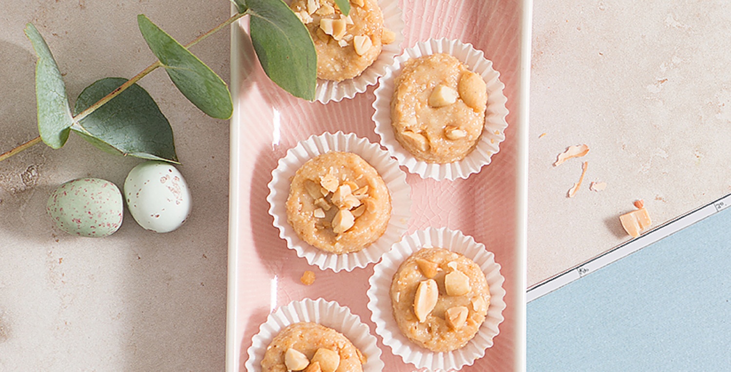 - Die gekühlte Masse in kleine Quadrate schneiden oder in Kreisform ausstechen und in Pralinenförmchen legen. Nach Wunsch mit gehackten Erdnüssen garnieren und gekühlt servieren.