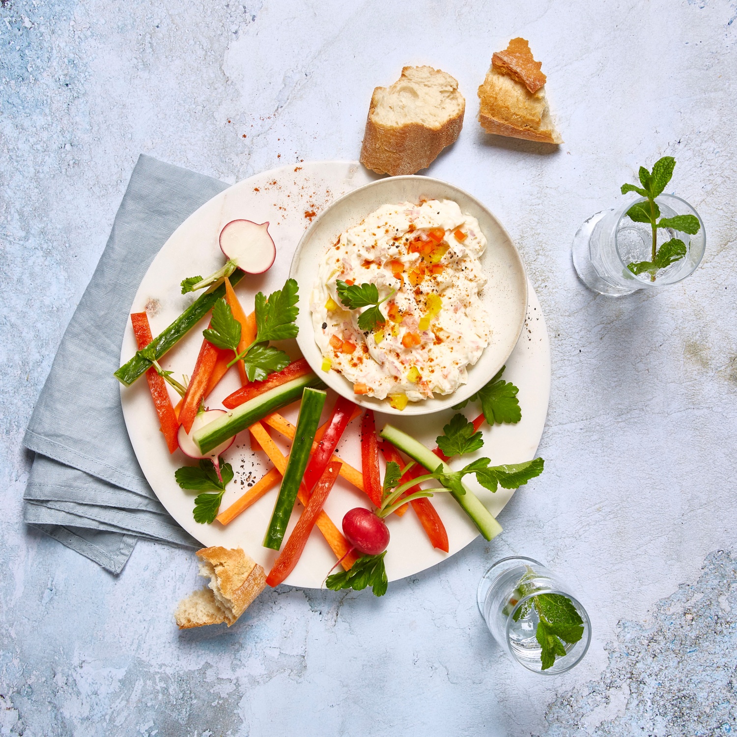 Am besten schmeckt der Dip zu frischem Gemüse.