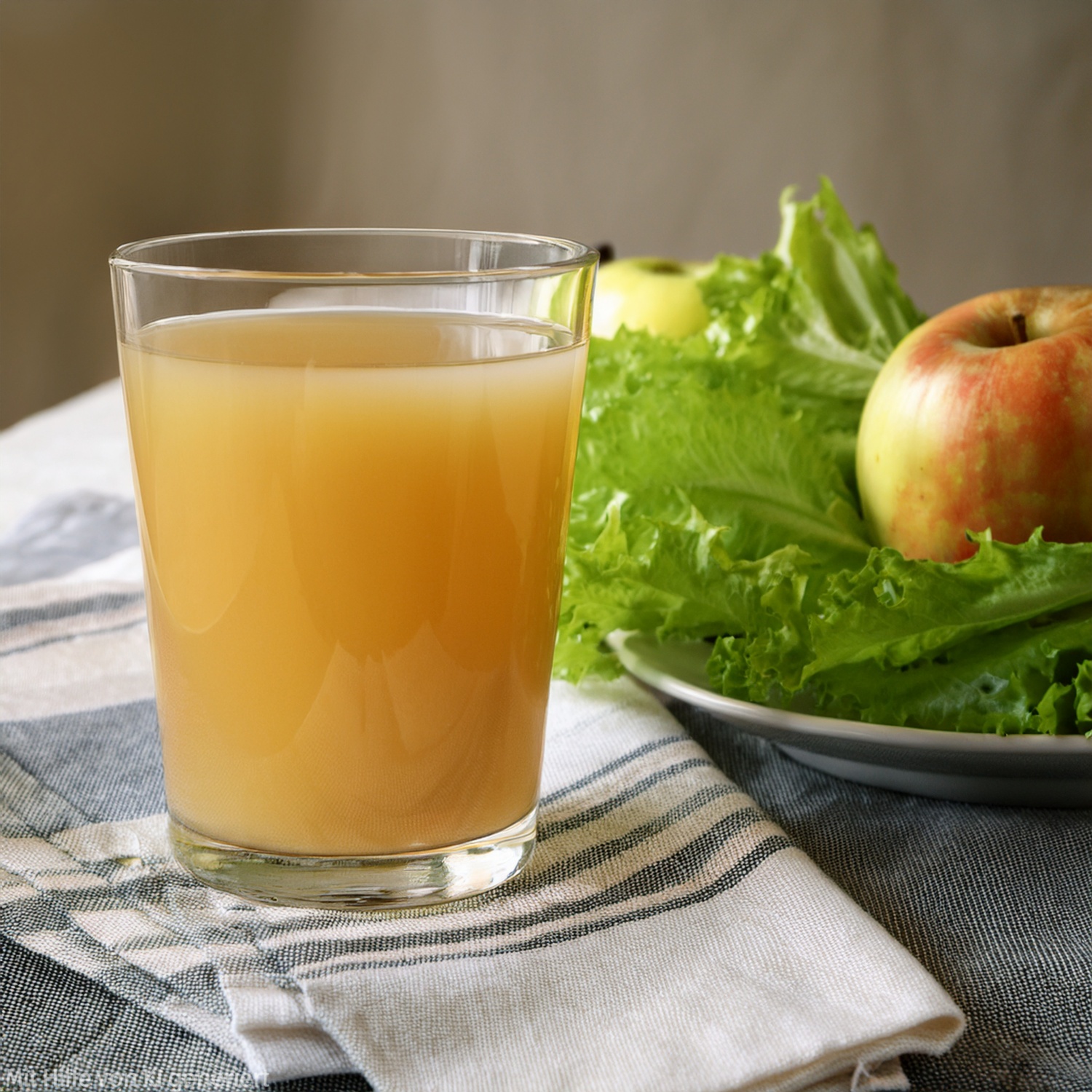 - Den Saft in Gläser füllen und mit frischen Feldsalatblättern oder Apfelscheiben garnieren. Sofort servieren und genießen.