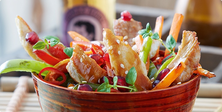 Pikanter Fleischsalat mit Sesam und Granatapfel