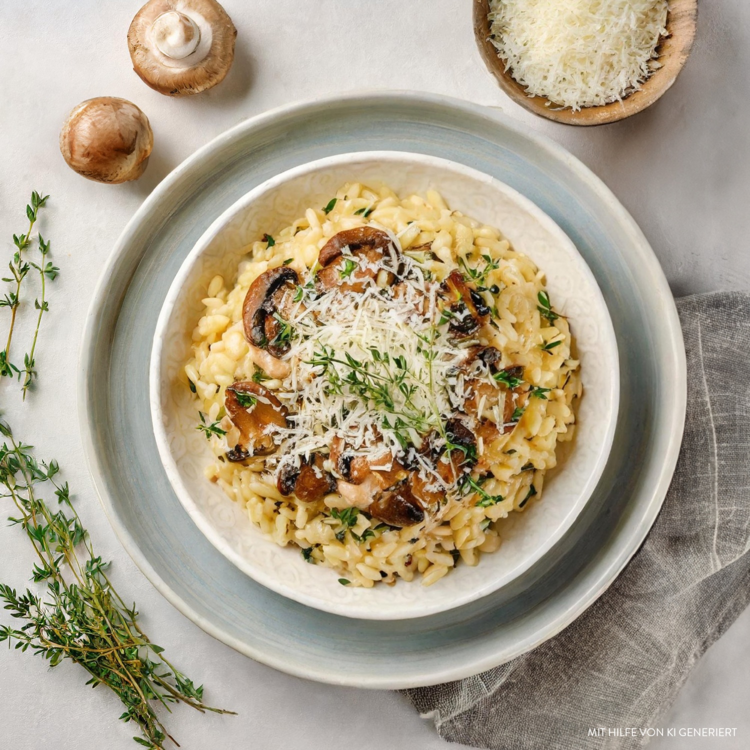 CremigesRisoni mit aromatischen Pilzen und Parmesan – ein Genuss für alle Sinne. Perfekt als Hauptgericht für zwei Personen.