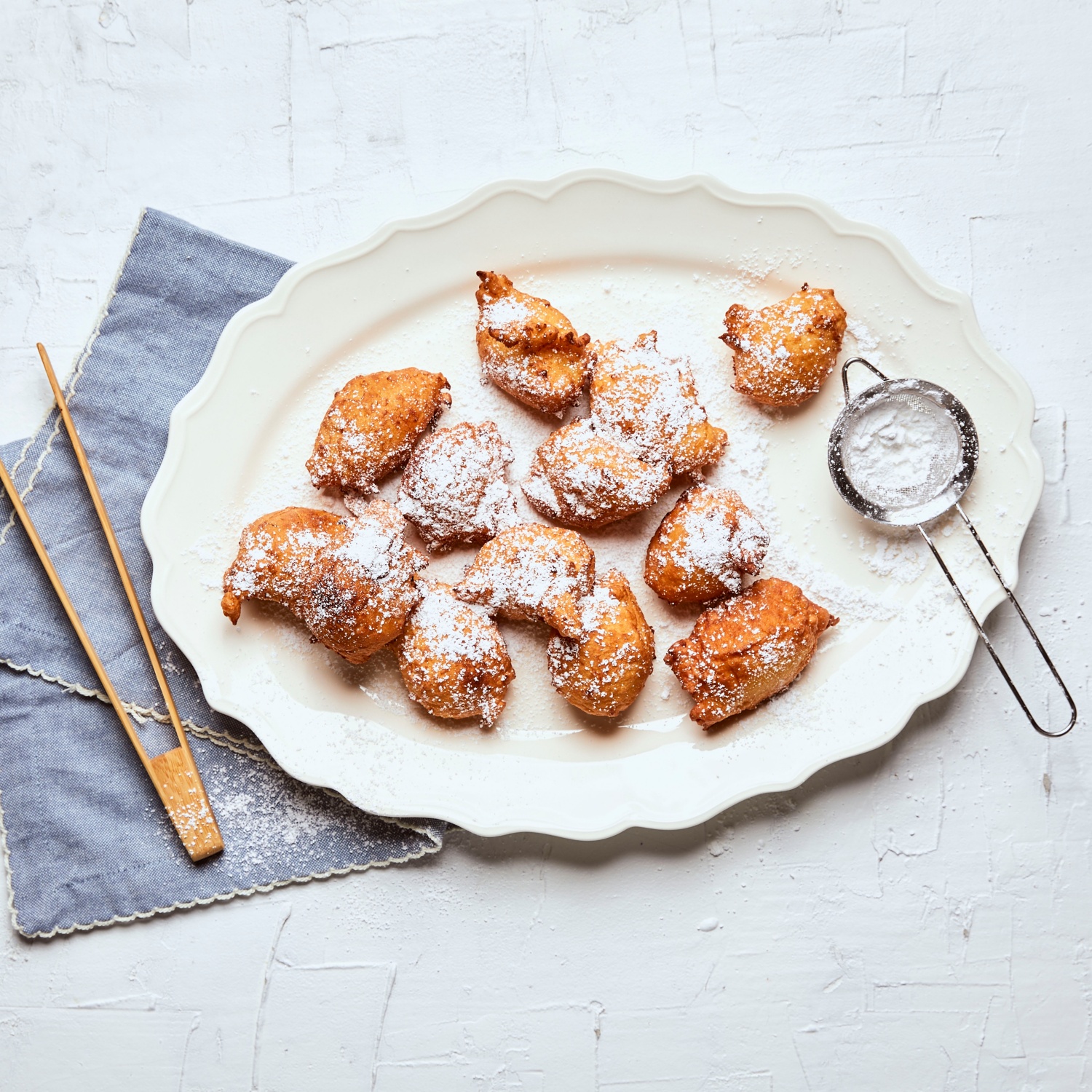 - Das Pflanzenöl in einem Topf erhitzen. Wenn das Fett heiß genug ist, den Teig mithilfe von 2 Löffeln portionsweise hineingeben. Je 4-6 Mutzen in einem Durchgang in das Fett gleiten lassen und goldbraun ausbacken. Den Vorgang so lange wiederholen, bis der Teig aufgebraucht ist.