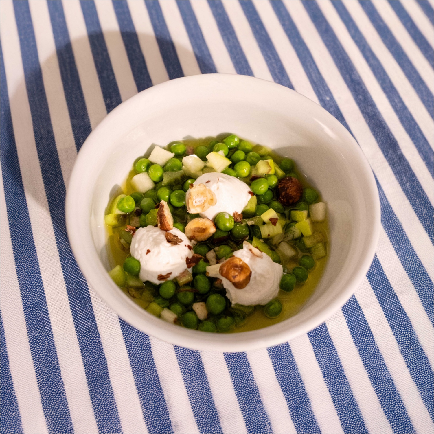 Rhabarber, Apfel und Erbsen mit Haselnuss und Honigvinaigrette