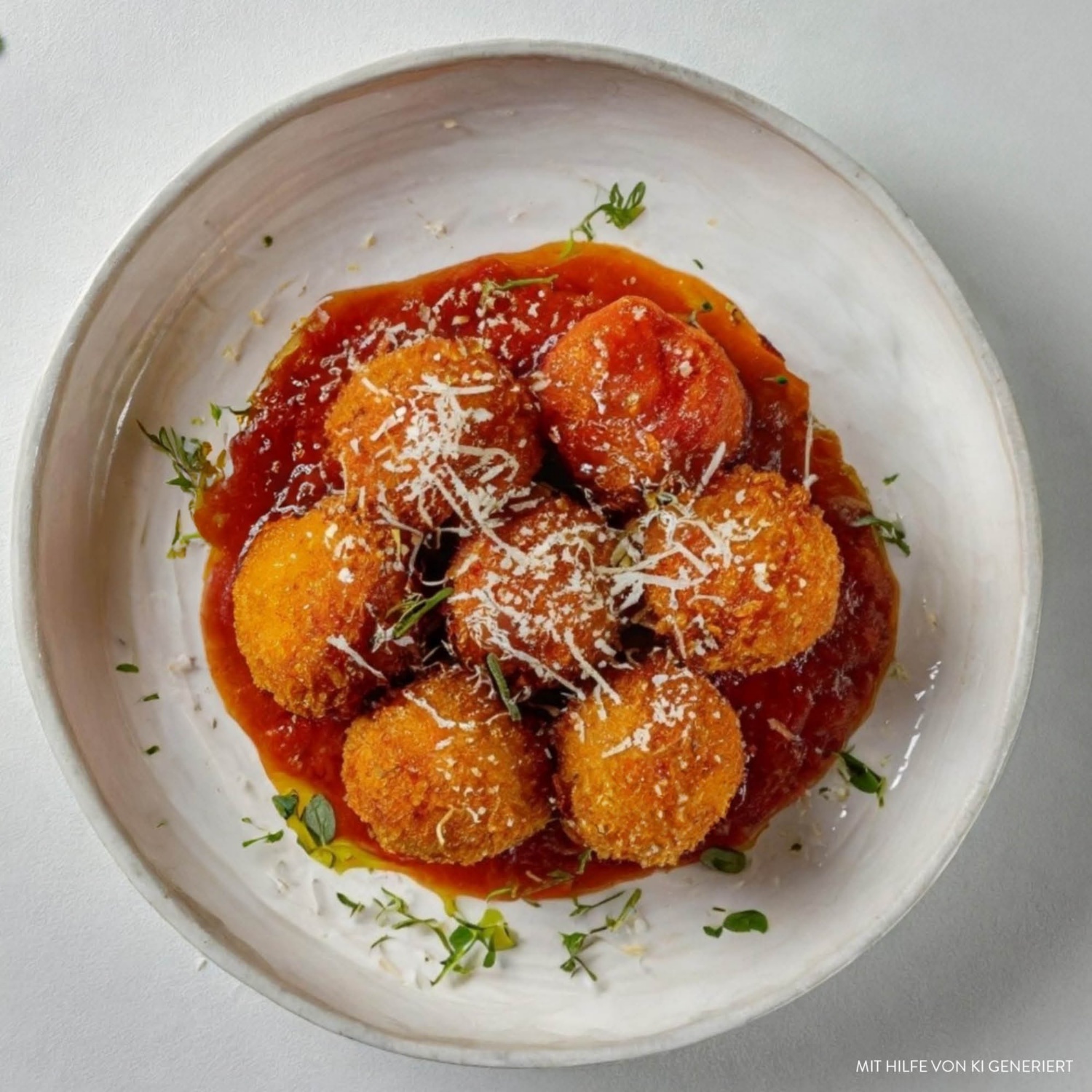 Saftige Risoni-Bällchen mit einer würzigen Tomatensauce – ein Genuss für jeden Geschmack! Zum Rezept