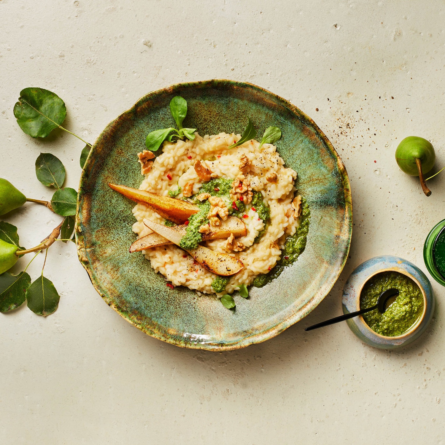 Molto Cremissimo – das fruchtige Risotto begeistert mit Birne, knackigen Nüssen und aromatischem Feldsalatpesto. Zum Rezept