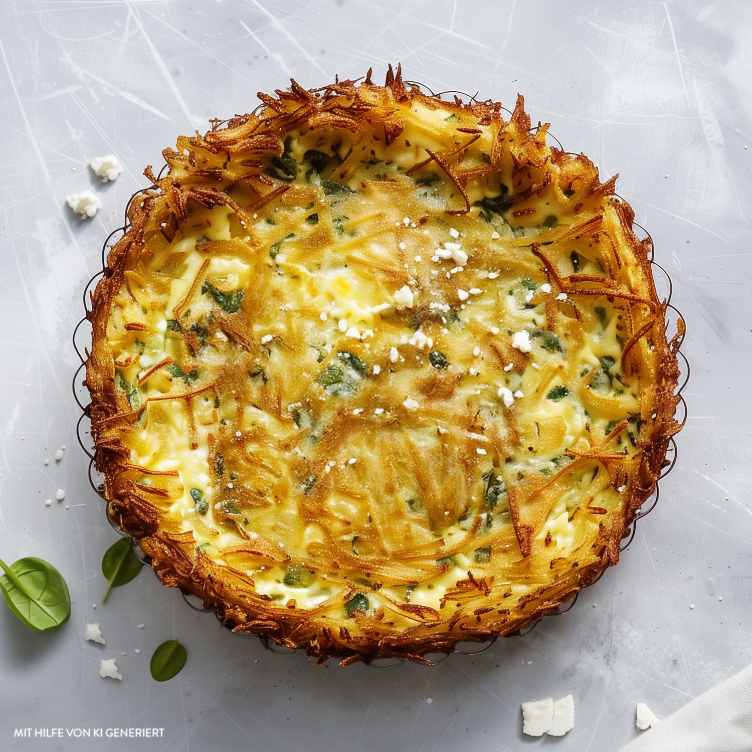 Ein herzhaftes Gericht, das die knusprige Textur von Rösti mit einer cremigen Feta-Spinatfüllung vereint.