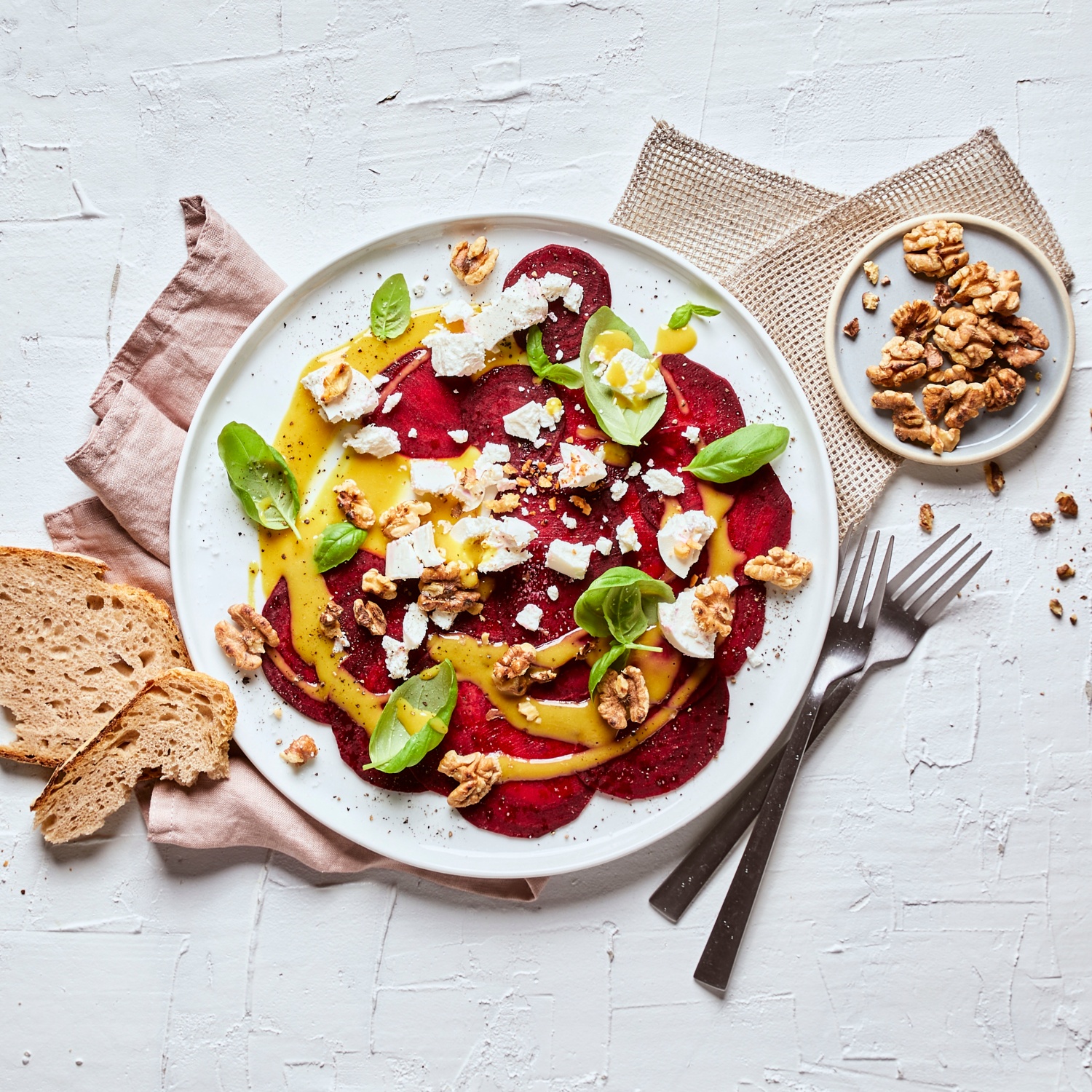 Rote Bete Carpaccio mit Ziegenkäse und Walnüssen