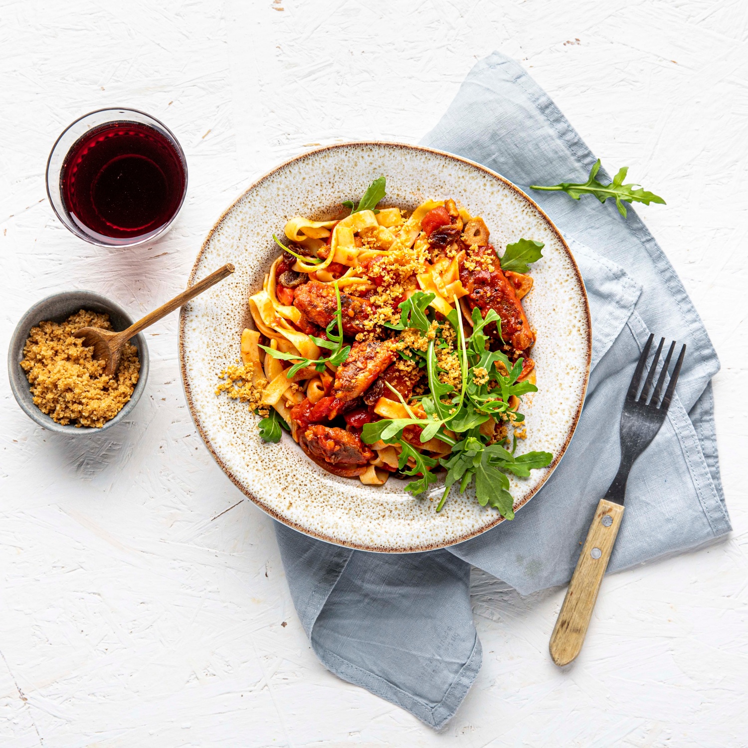 Pasta wie auf Sizilien: leichte Tomatensauce mit würzigen Sardinen und knusprigen Brotbröseln. Für den besonderen Kick sorgen zuckersüße Sultaninen.