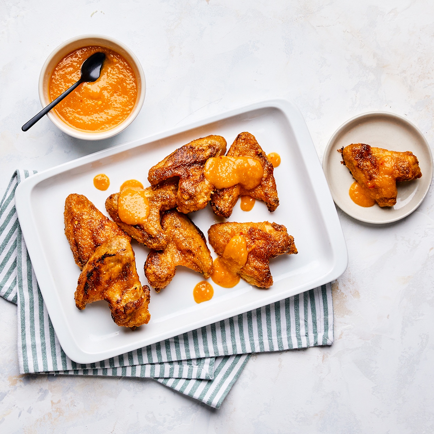 - Die Chicken Wings mit der übrigen Mango-Sauce servieren.