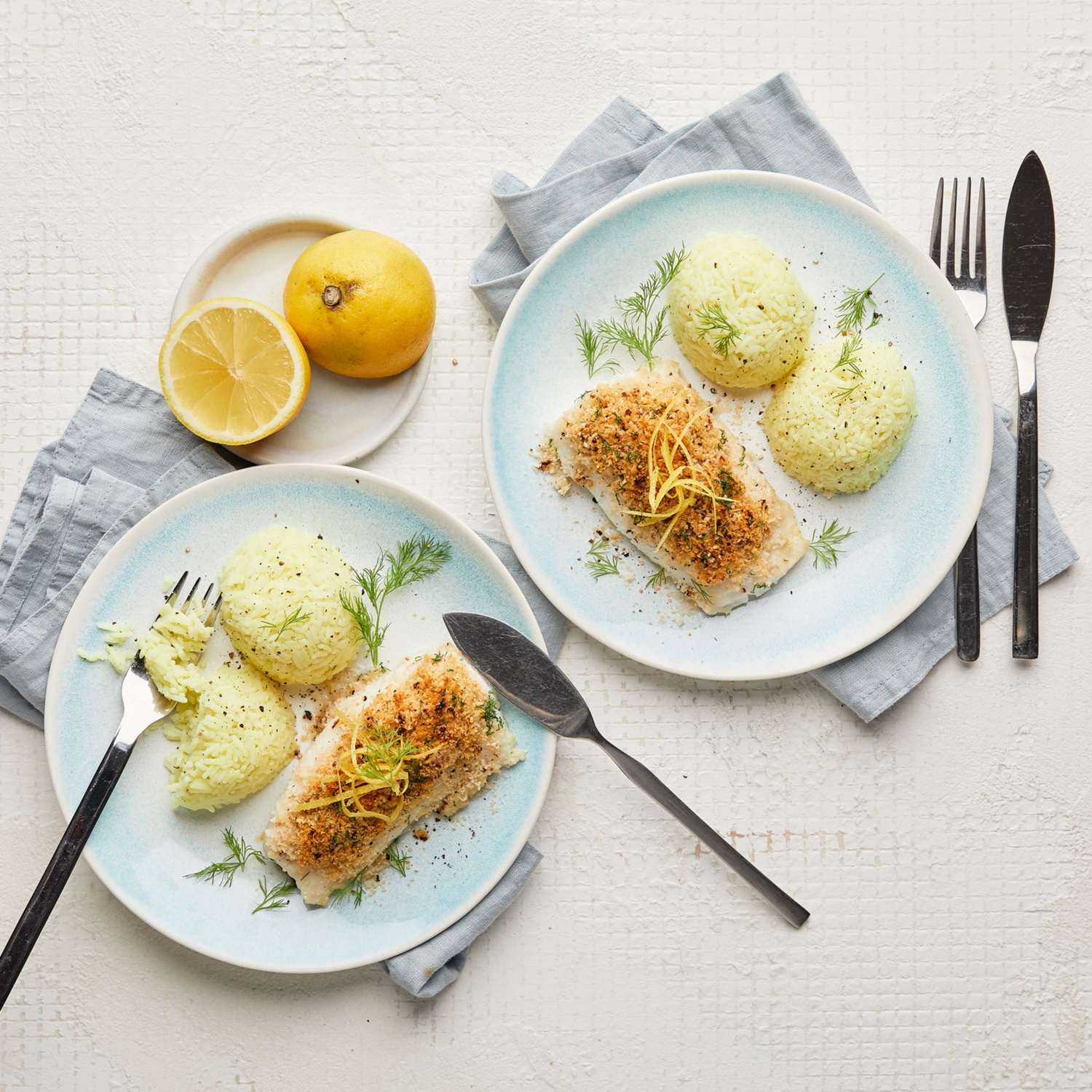 Duftender Zitronenreis, saftiges Kabeljaufilet und eine leckere Kruste – so ist das frische Schlemmerfilet im Handumdrehen zubereitet. Zum Rezept
