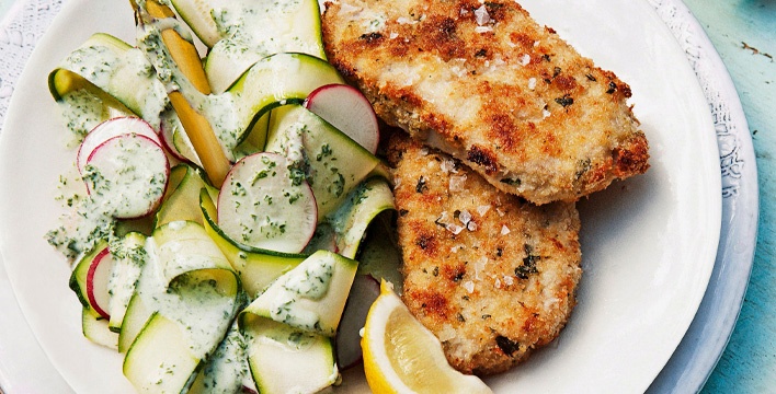 Auch im Sommer: Schnitzel geht immer. Schließlich machen die goldbraun gebratenen Fleischstücke nicht nur zu Spargel, Kartoffelsalat und Co. eine gute Figur. Auch mit buntem Gemüse wie blanchierten Zucchinischeiben und knackigen Radieschen wird das klassisch panierte Schinkenschnitzel ganz einfach zum frischen Sommergericht. Zum Rezept