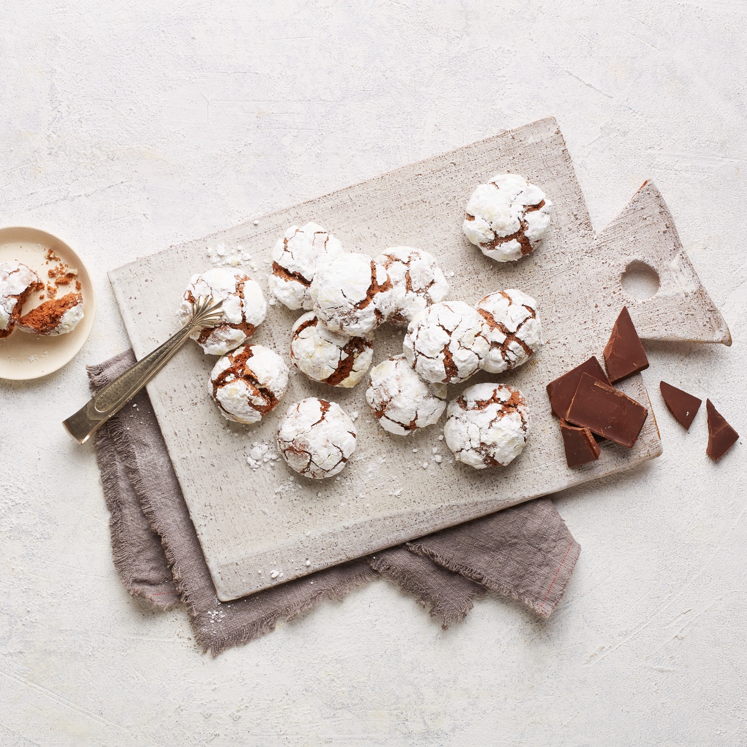 Eine weiche, kuchenartige Konsistenz haben diese leckeren Schoko-Schneebällchen, die im Englischen auch unter Chocolate Crinkle Cookies bekannt sind. Zum Rezept