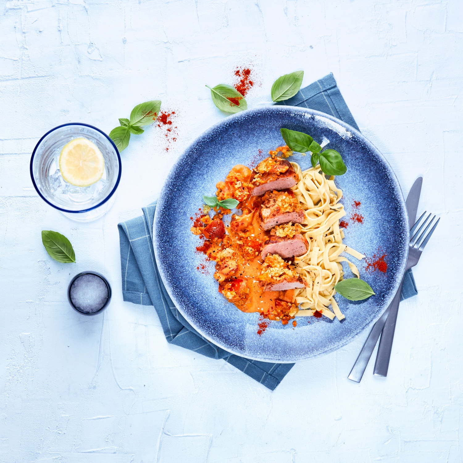 Das mediterrane Schweinefilet mit Bacon und Bandnudeln ist ein herzhaftes Gericht, das die Herzen aller Fleischliebhaber höherschlagen lässt. Zum Rezept