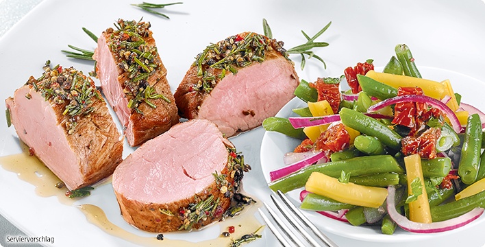 Schweinelendchen mit Rosmarin und lauwarmem Bohnensalat