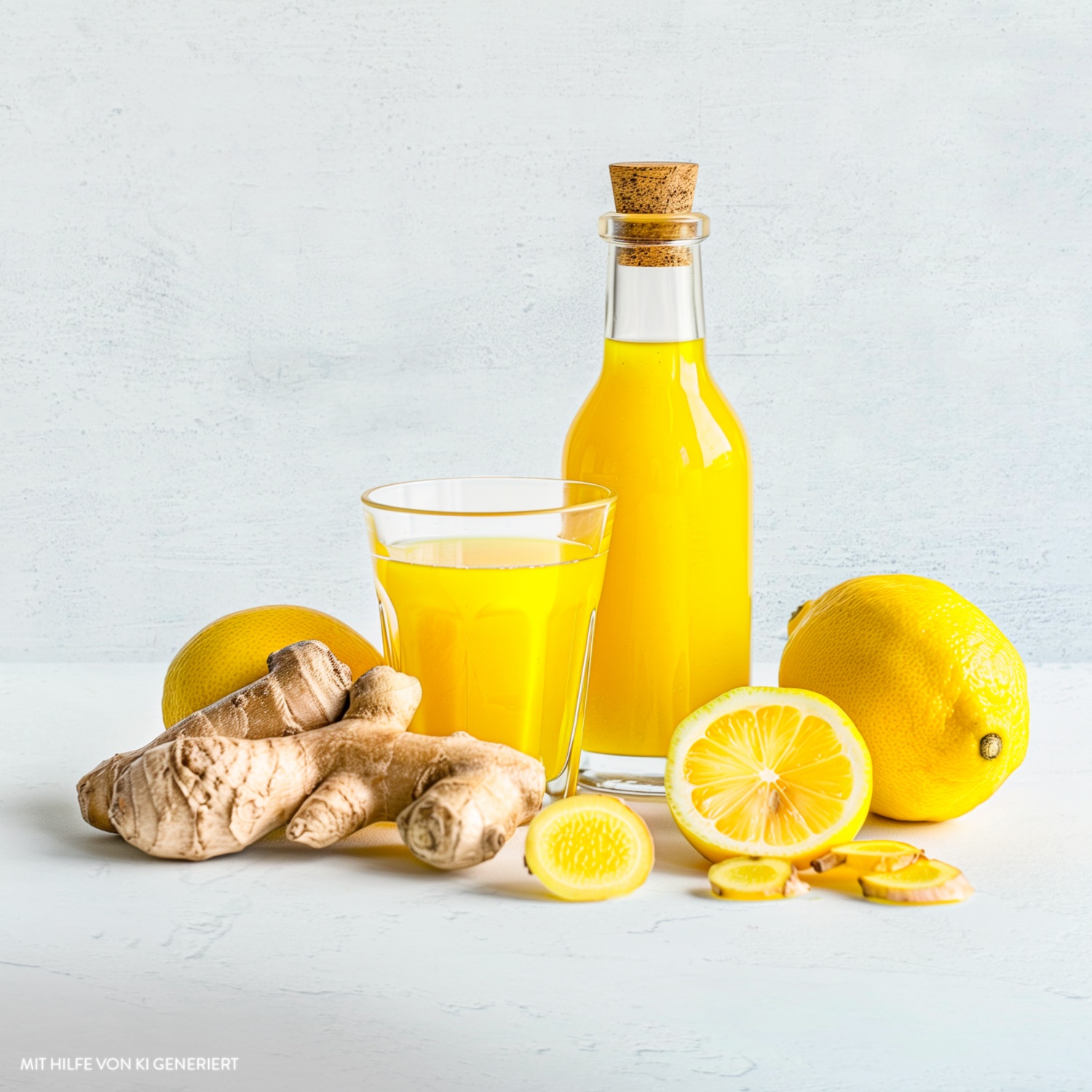 3. Die Ingwerstücke zum Zitronensaft hinzufügen und alles gut durchmixen oder entsaften.