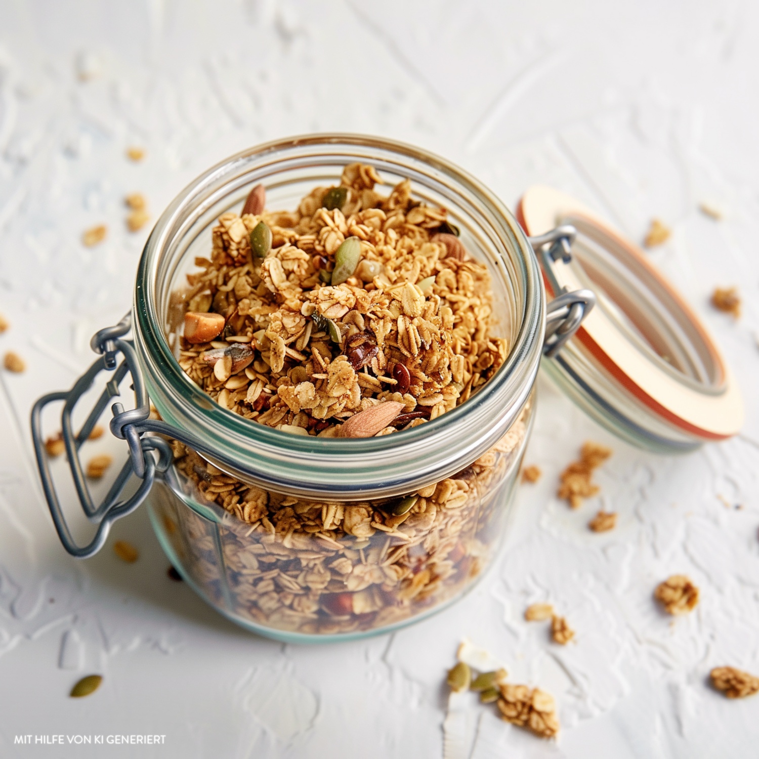 Knuspriges Granola aus Haferflocken, Nüssen und Samen, mit Honig gesüßt. Perfekt als Topping für Joghurt oder Desserts. Zum Rezept