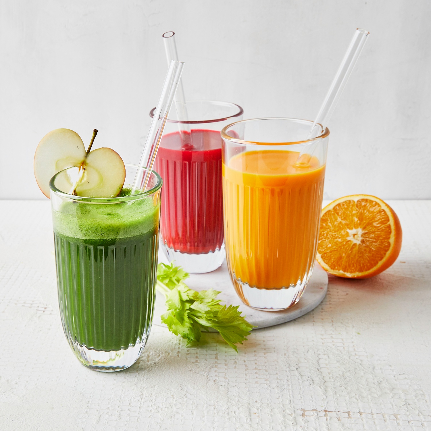 Der perfekte Kickstart in deinen Morgen oder als vitaminreiche Zwischenmahlzeit – probiere unsere drei leckeren Säfte und ihren bunten Mix aus Obst und Gemüse. Zum Rezept
