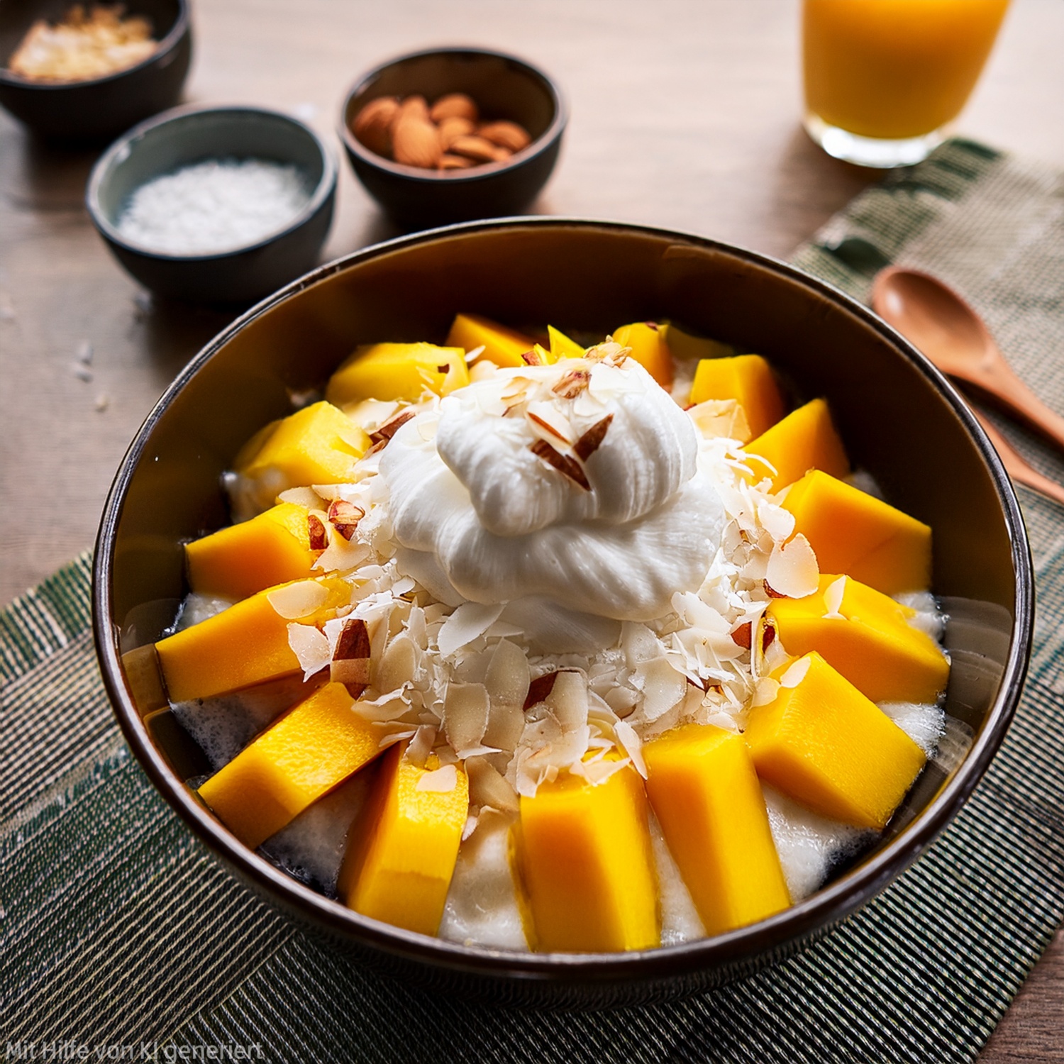 Sommerliches Bingsu mit Kokos und Mango