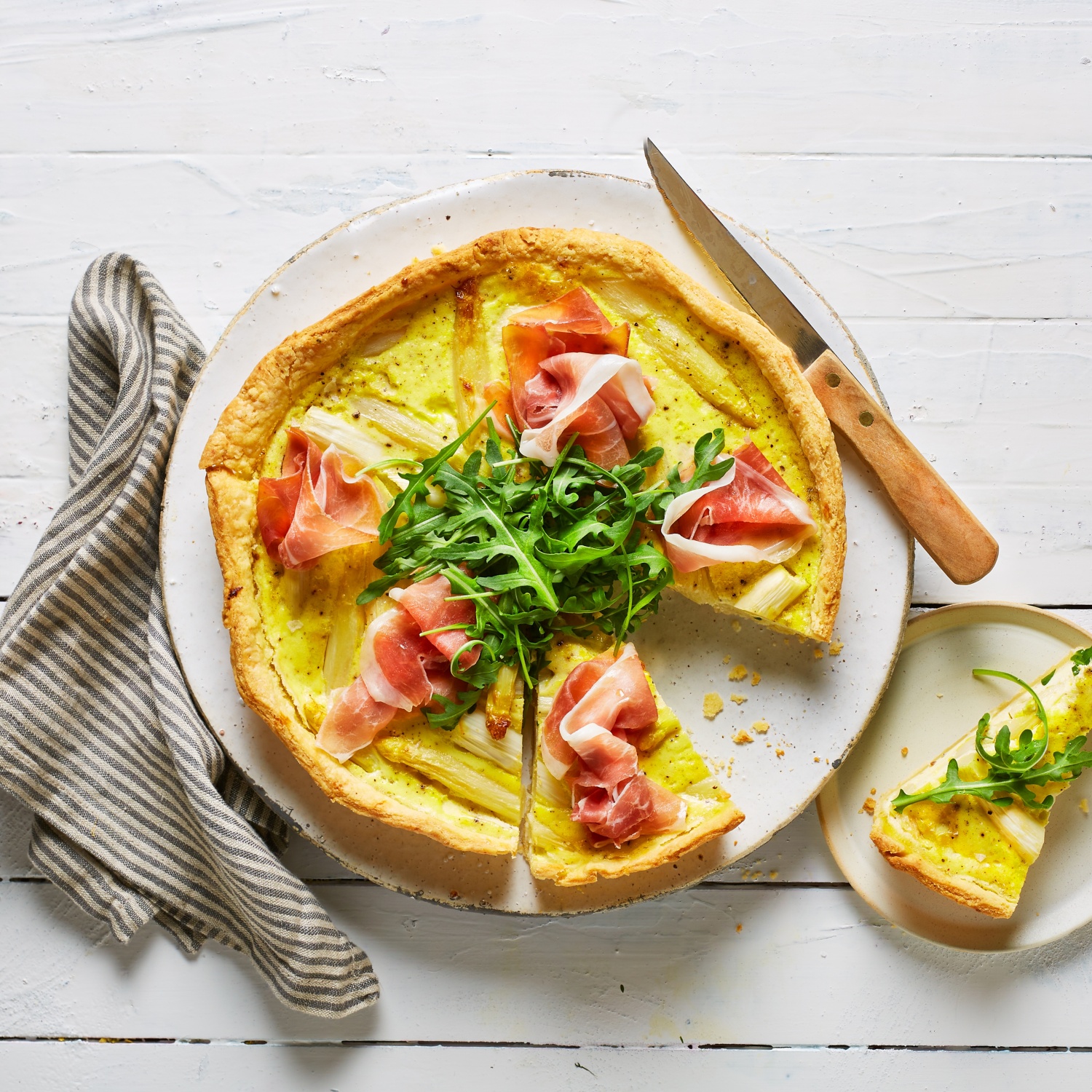 Spargelquiche mit Rucola und Schinken: dieses Rezept wird schon bald zu Ihren Lieblingsspeisen zählen. Zum Rezept