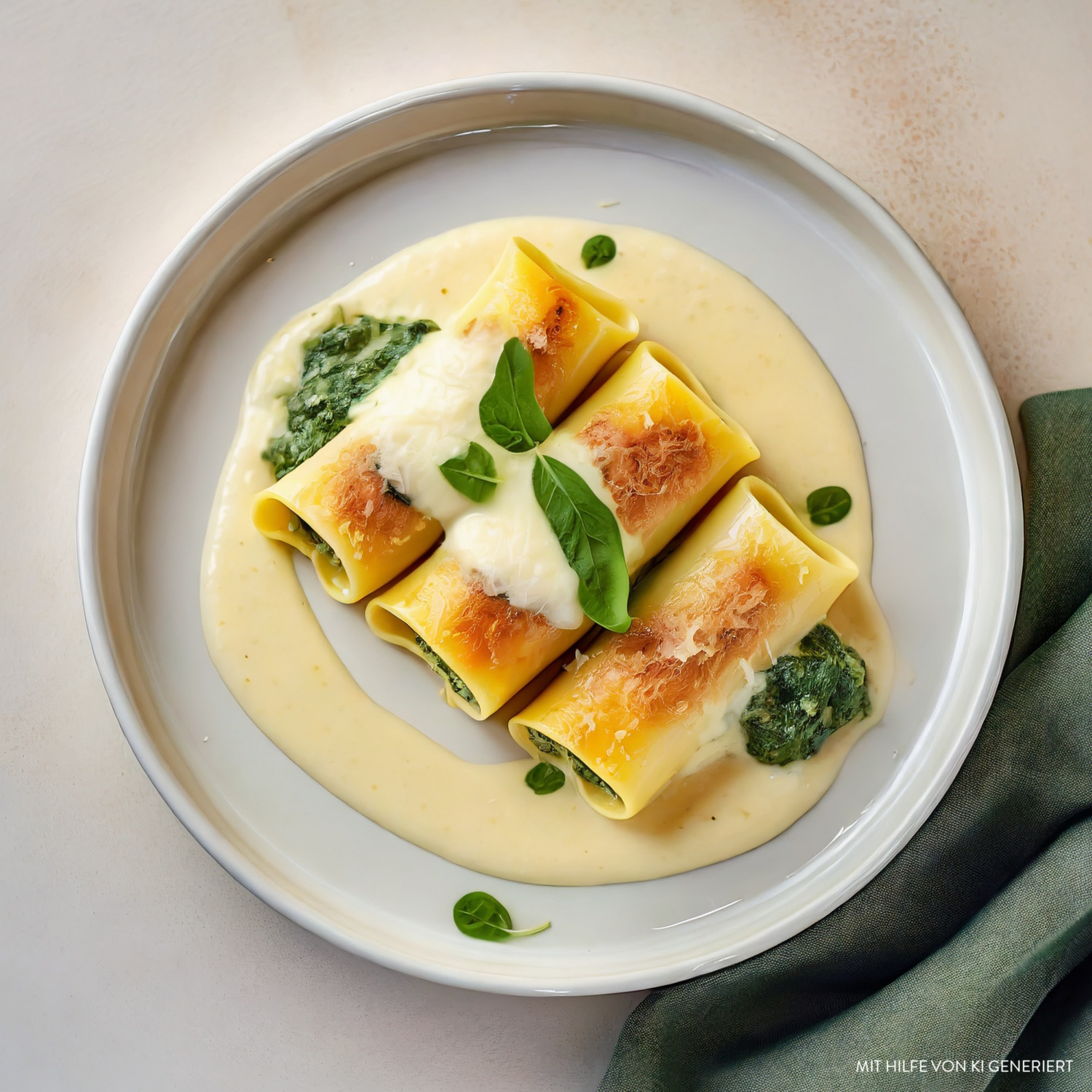 Spinat und Ricotta Cannelloni mit cremiger Béchamelsauce