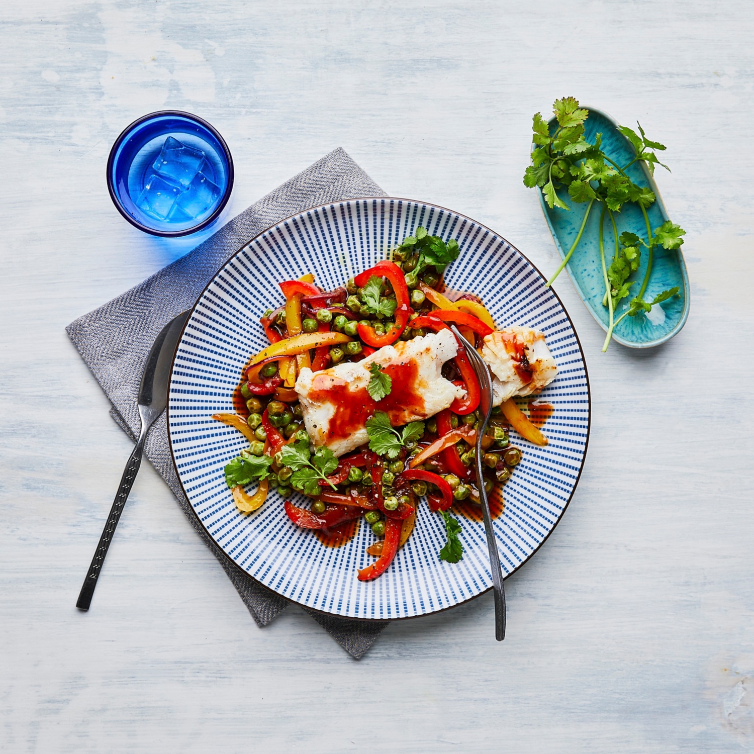 Dieses asiatische Gericht kombiniert zarten Kabeljau mit köstlicher süß-saurer Sauce. Paprika und Zwiebeln bringen frische Aromen, während Erbsen einen leichten, süßen Akzent setzen. Zum Rezept
