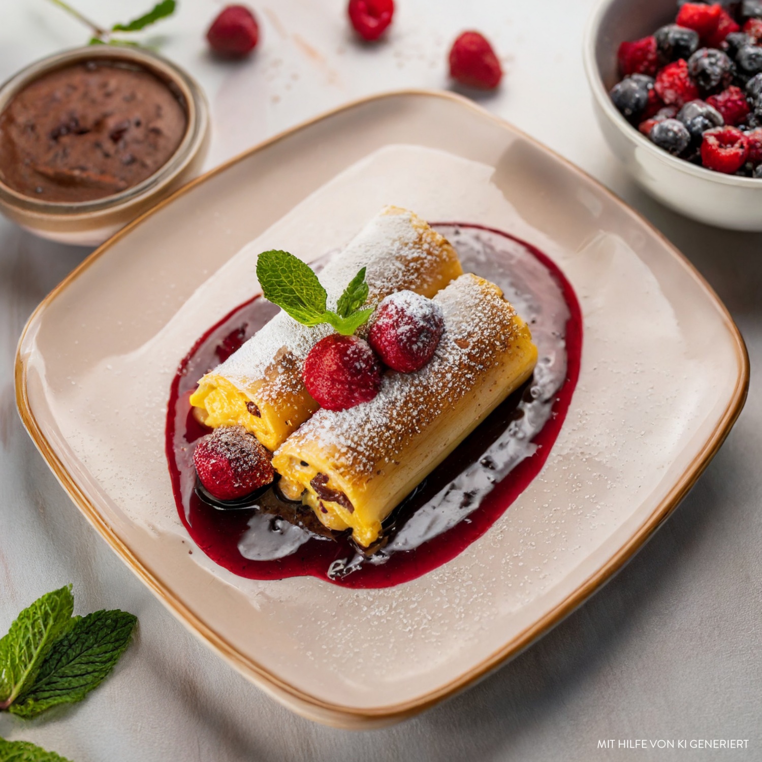 Süße Schokoladen-Cannelloni mit Beeren-Kompott