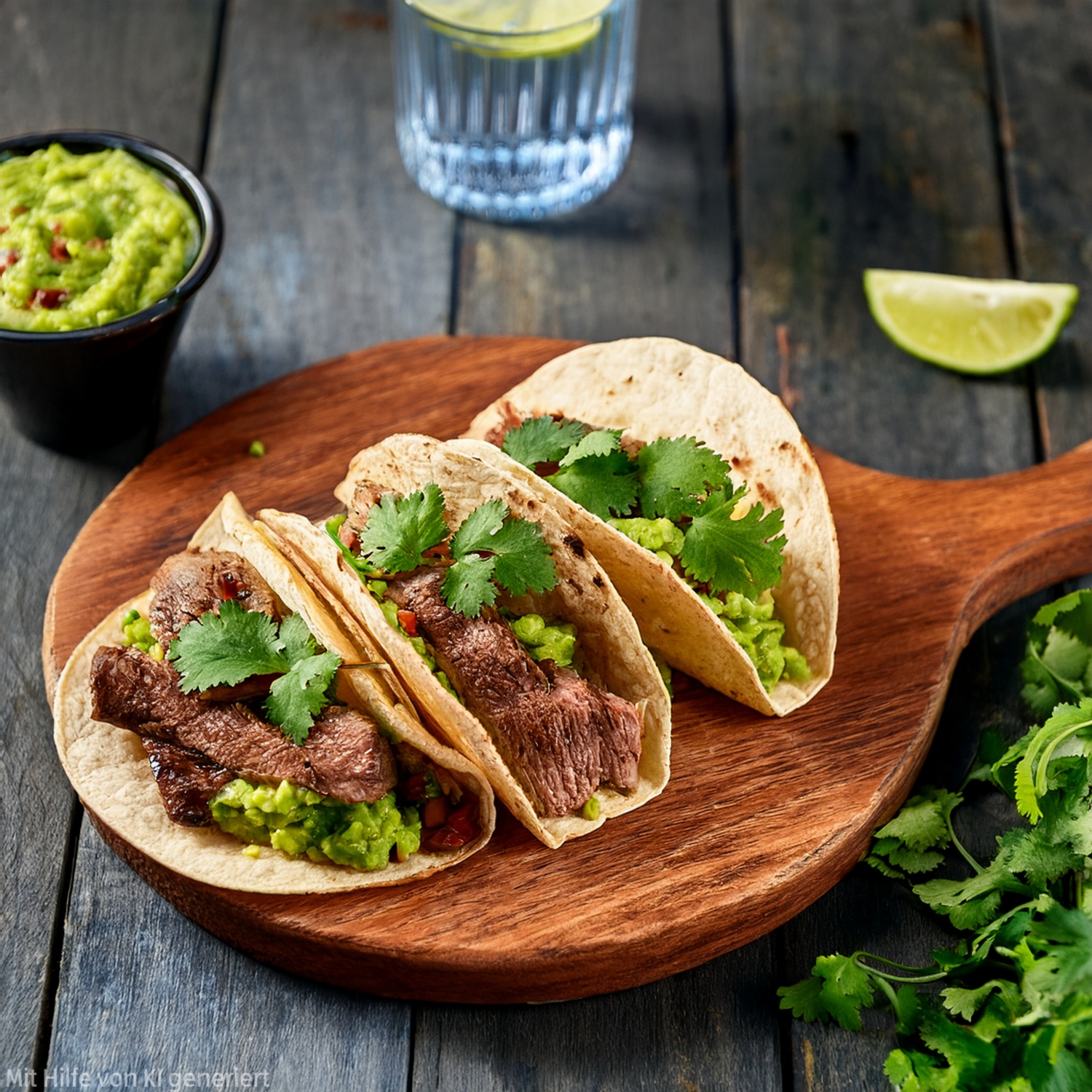Tacos mit gegrilltem Entrecote und cremiger Guacamole