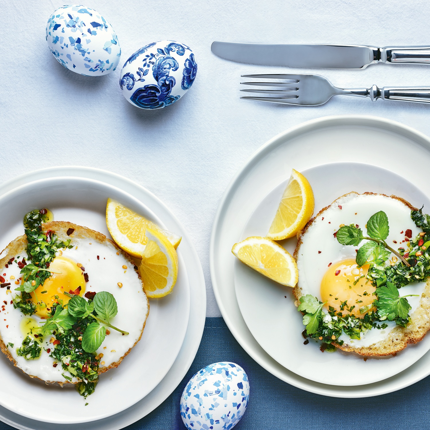 - Die Egg Hoppers mit der Kräutersalsa beträufelt servieren.