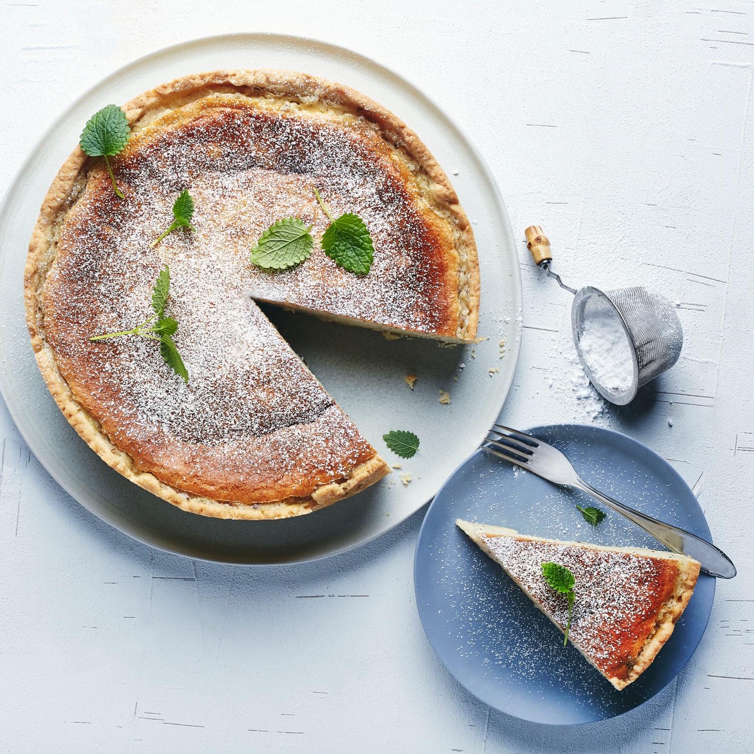 - Die Milchreisfüllung eingießen, glattstreichen und das Osterchüechli im vorgeheizten Ofen bei 180 °C Ober- und Unterhitze (160 °C Umluft) ca. 45 Minuten backen. Abkühlen lassen und vor dem Servieren mit Puderzucker bestreuen.