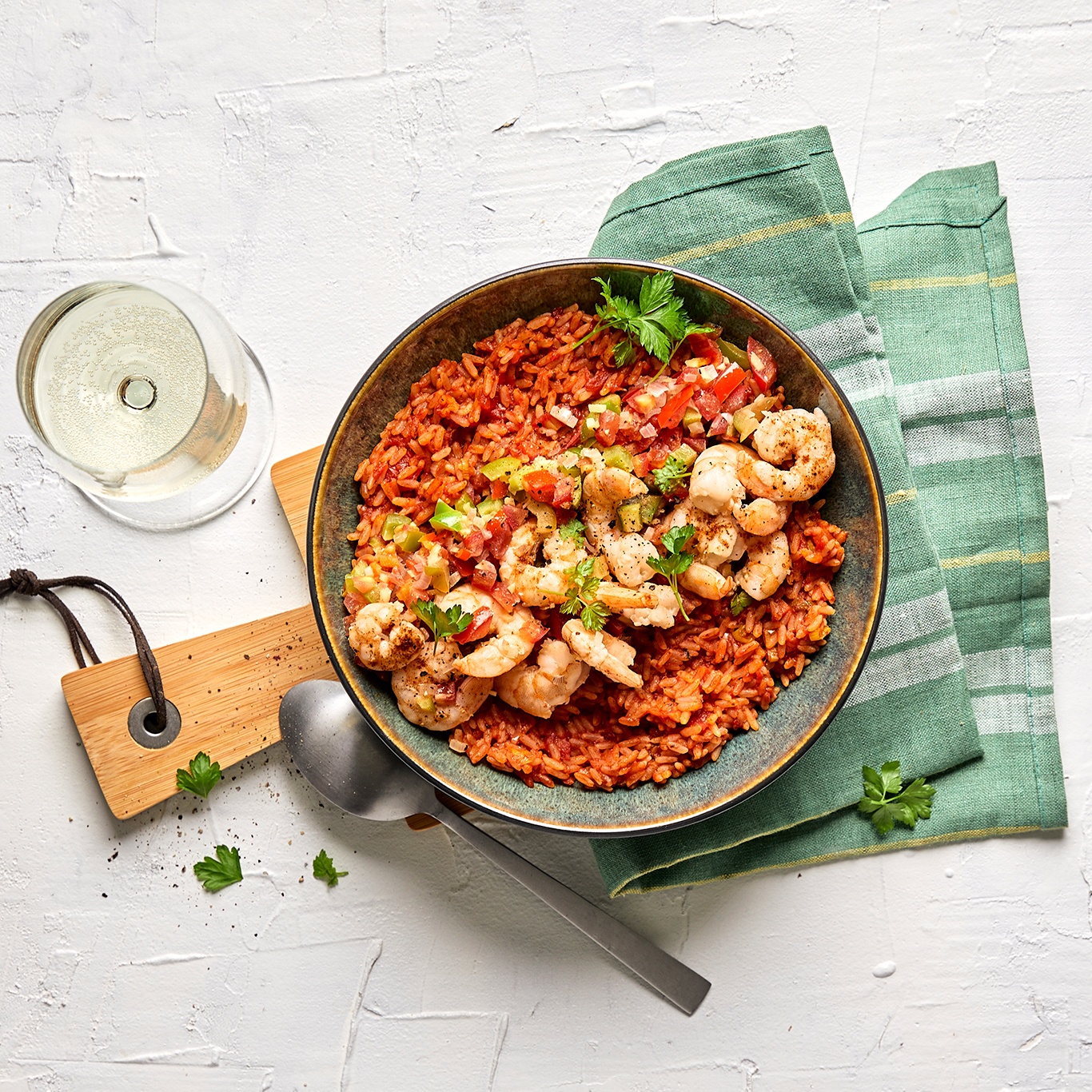 - Den Tomatenreis mit den Garnelen anrichten und alles mit Petersilie garniert servieren.